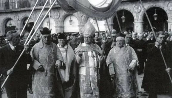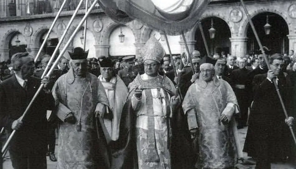 Fray Francisco Barbado Viejo, entrando en Salamanca en 1942. Foto de Ángel de la Horna. Fuente: Salamanca en el ayer.