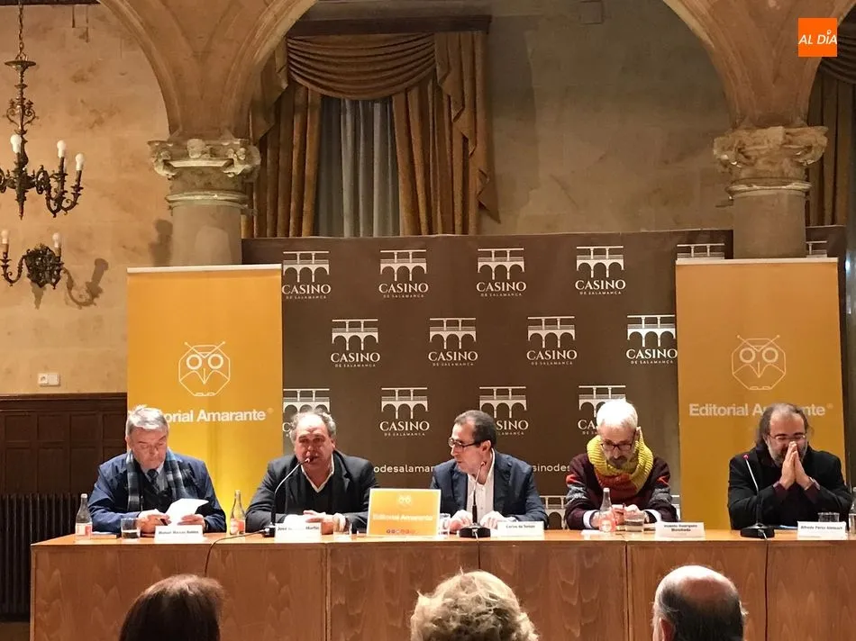 El Casino de Salamanca tiene ese encanto señorial y cercano, la mezcla perfecta de empaque y calidez que le convierte en un espacio cada vez más indispensable. Cuidadosamente preparado para cada acto, sus columnas y su cristalera, siempre me sorprenden así como la solemnidad que lleva consigo el Palacio de Figueroa, la misma que recibe, con un silencio callado y reverente, la entrada de los miembros de la mesa. Y todos dejamos de saludarnos y de aposentarnos ?yo le estaba diciendo al pintor Miguel Elías que extrañaba sus lienzos de bambú expuestos en esta misma sala- y no podemos por menos que sonreír, porque José Amador Martín, el nuestro, el de todos los días, el que pasea a horas intempestivas por la Salamanca madrugadora, tiene el aire y la solemnidad feliz y emocionada de los más importantes días.