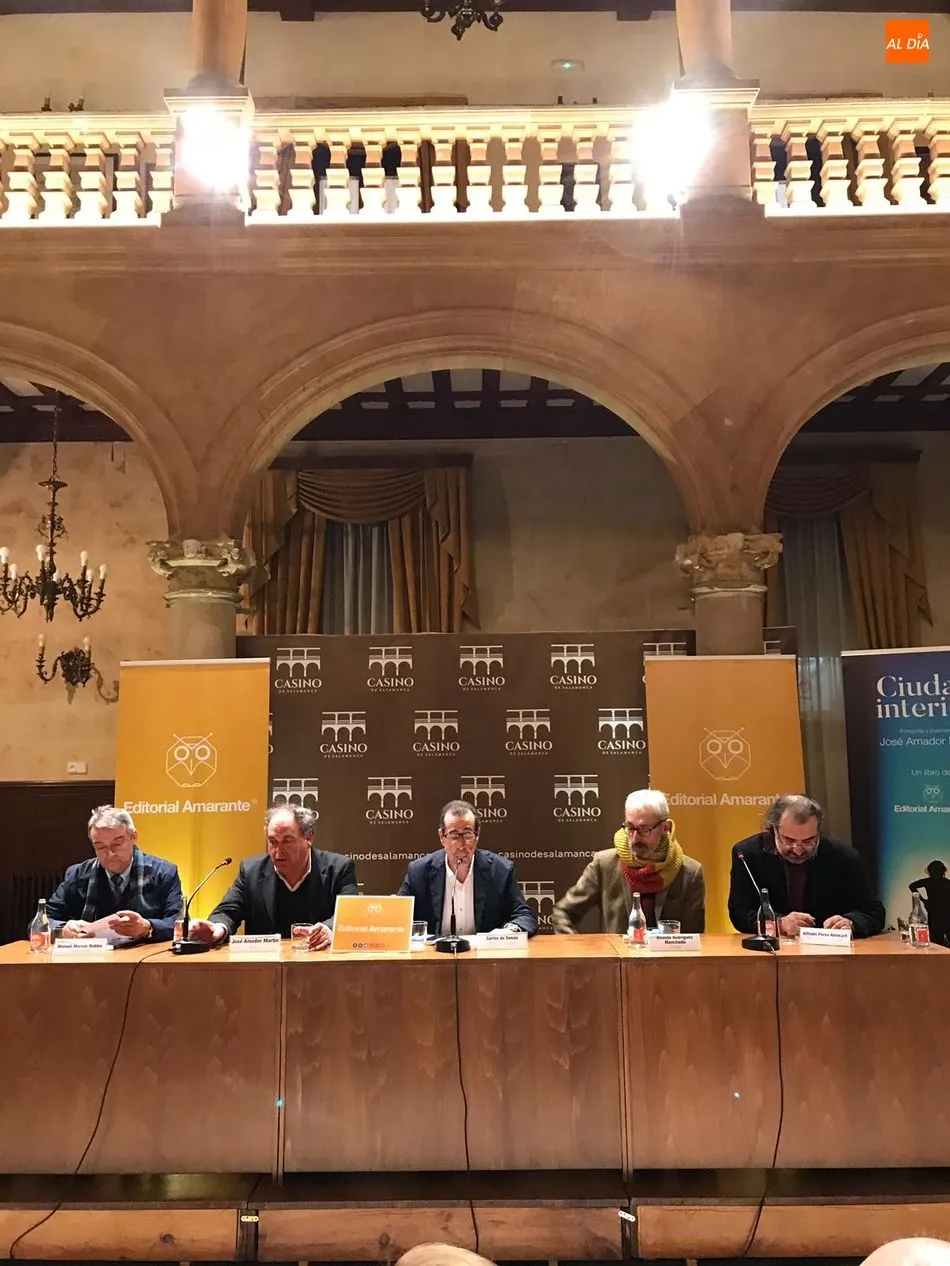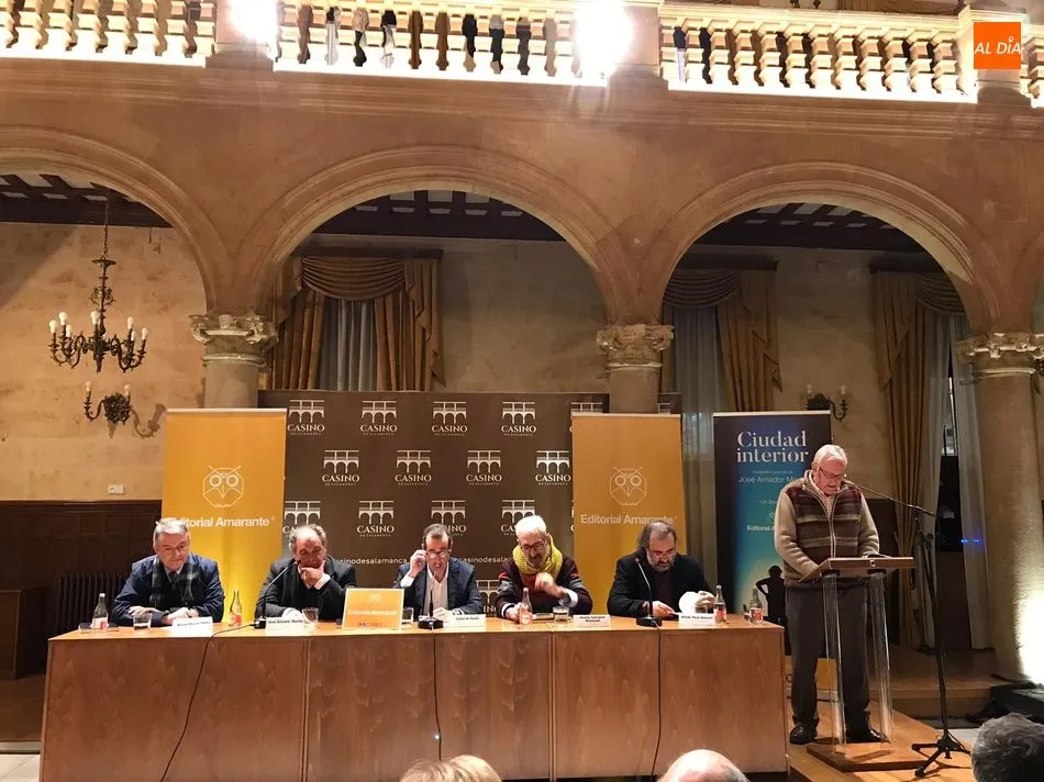 Porque hoy es un día importante. Después de tantas colaboraciones, participaciones en volúmenes colectivos, recitales, encuentros? Amador publica sus poemas, una ocasión que, como recuerda Carlos de Tomás, editor de Amarante, no se repetía desde los años ochenta, cuando apareció un libro prologado por el que era su amigo, Aníbal Núñez. Ciudad interior resulta así un privilegio para los lectores del poeta, que tan bien conocen sus vídeos, sus fotografías, sus versos y sus artículos semanales en el periódico digital Salamanca al día y que ahora tienen en sus manos lo que parece una extensa antología.