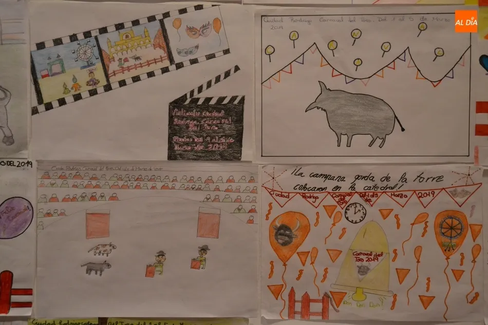 La planta baja de exposiciones de la Casa Municipal de la Cultura de Ciudad Rodrigo acoge la recopilación de trabajos presentados por los niños mirobrigenses al XXIX Concurso de Dibujo Infantil convocado por el Ayuntamiento mirobrigense con motivo del Carnaval del Toro 2019.