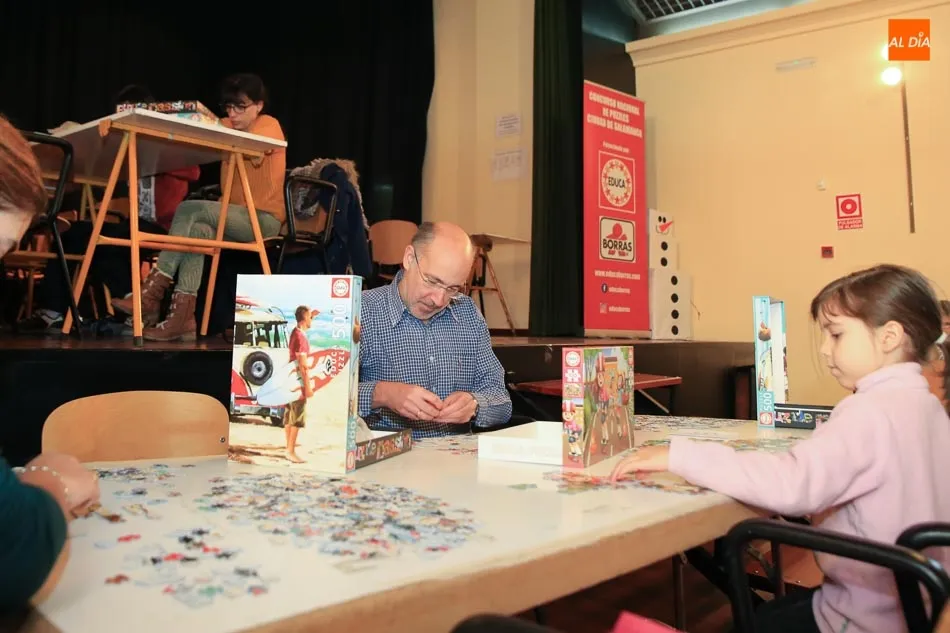 Esta mañana, en la Iglesia Vieja de Pizarrales, ha comenzado el XVIII Concurso Nacional de Puzzles organizado por Asecal, con el patrocinio de Educa y Borrás. En la primera sesión había más de 40 participantes, aunque esperan superar los 280 de la edición anterior. De hecho, no hay inscripción previa y tanto hoy jueves como el viernes cualquiera puede ir y participar.