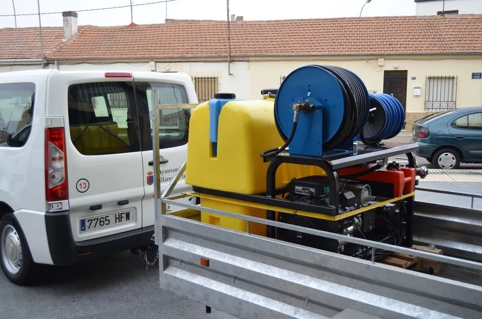 El Consistorio también ha recibido un moderno equipo portátil de alta presión para desatrancos y limpieza de tuberías de la red municipal de saneamiento y aguas pluviales, dado que este municipio cuenta con una extensa red en sus diversos enclaves urbanos, y se producen ocasionalmente atascos por la suciedad arrojada a la misma por parte de industrias y demás usuarios, debiendo contratarse los servicios bien de empresas o de la Diputación Provincial, para la limpieza de las incidencias, con el coste que ello implica.