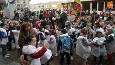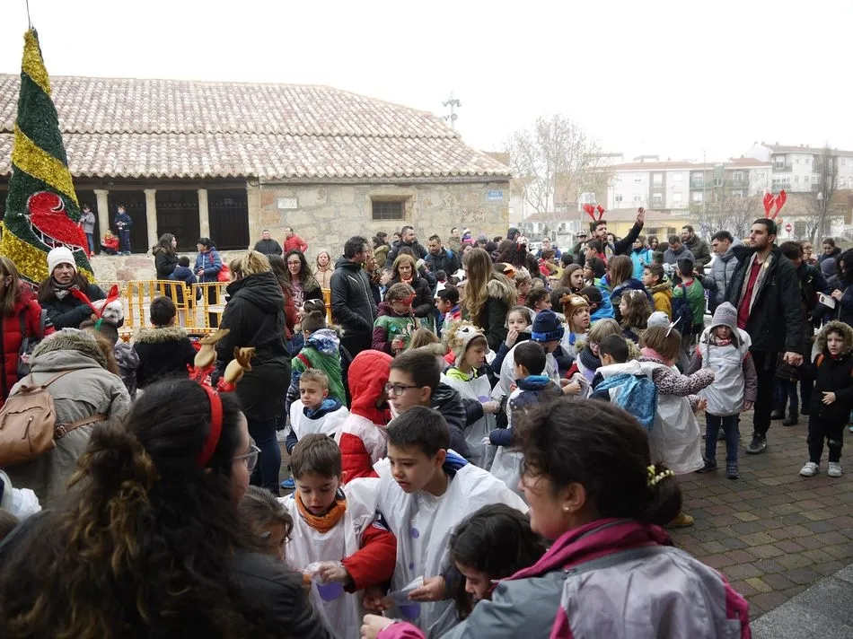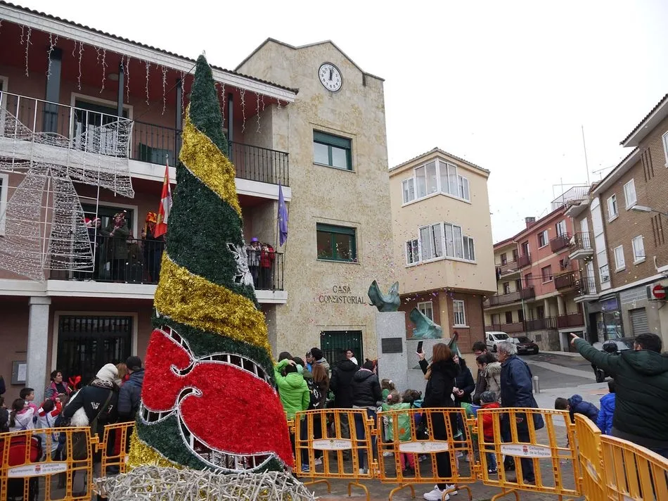 El frío no ha sido un impedimento para que los vecinos de Carbajosa se hayan acercado a la plaza del Ayuntamiento para disfrutar de esta Nochevieja anticipada que ya es tradición en el municipio. Doce gominolas sustituyen a las doce uvas, y es de día en vez de noche, pero el ambiente festivo no ha faltado para darle la bienvenida al nuevo año unos días antes.