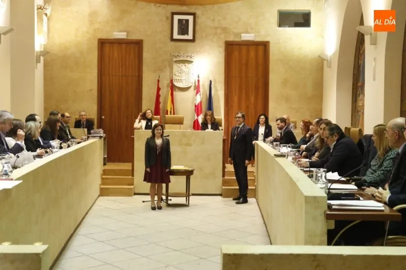 Mar Fuentes Chaves ya es concejala socialista del Ayuntamiento de Salamanca, tras la toma de posesión en el pleno ordinario que se celebra en el Consistorio con la promesa de acatar la Constitución en presencia del alcalde, Carlos García Carbayo. Filóloga de 30 años, profesora de español en Eslovaquia, el portavoz del Grupo Municipal Socialista, José Luis Mateos, ha definido a la concejala como una ?persona comprometida, muy capaz, muy trabajadora, dialogante y tenaz?.