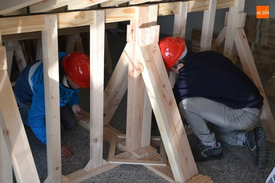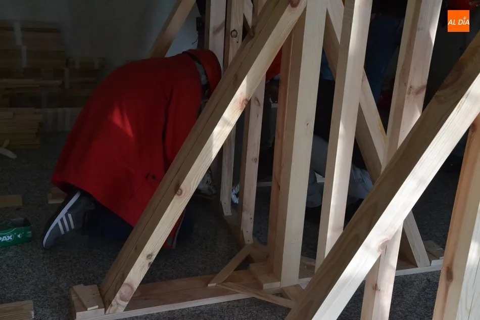 Como peculiaridad de esta reproducción, se ha apostado por los tornillos y no por las clásicas puntas, para así proteger más la madera (ya que al arrancar las puntas se suelen causar daños). Durante la mañana del sábado, ya se dejó muy avanzada la construcción, que se espera rematar a lo largo de la tarde sabatina.