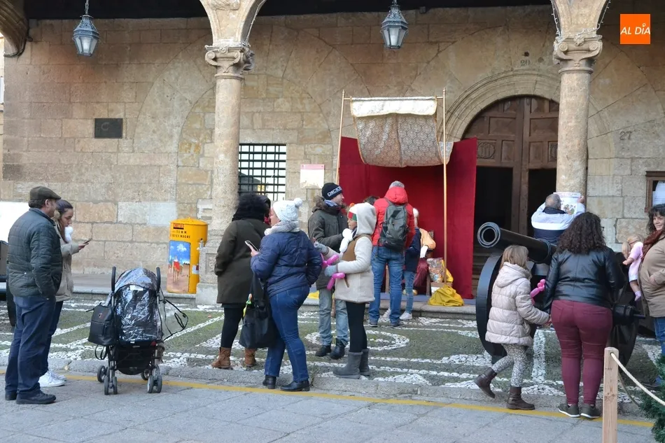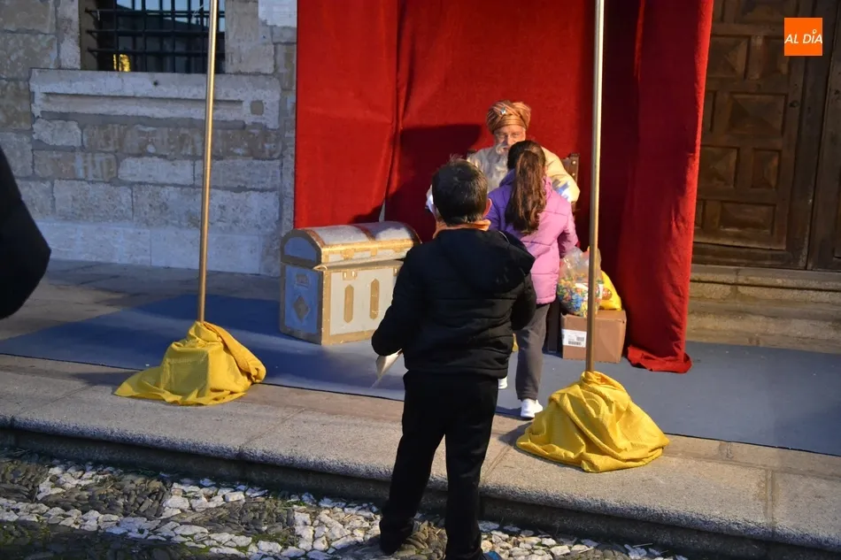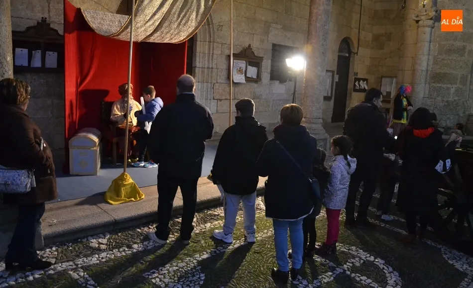 El Cartero Real fue llevado hasta la Plaza Mayor por los Amigos de la Ilusión, sentándose en el trono colocado bajo palio en los soportales de la Casa Consistorial. Con un baúl al lado para ir introduciendo las cartas que le fueron entregando, y con varias bolsas de caramelos para repartir, el Cartero fue recibiendo a todos los niños que por allí quisieron pasarse, todo ello en una tarde bastante fría en Ciudad Rodrigo.