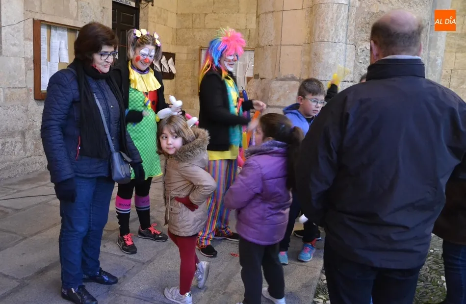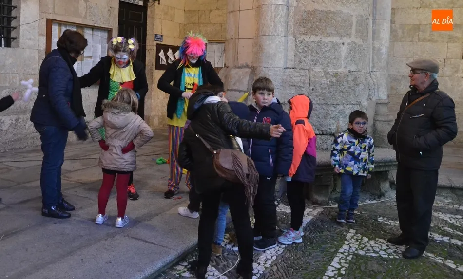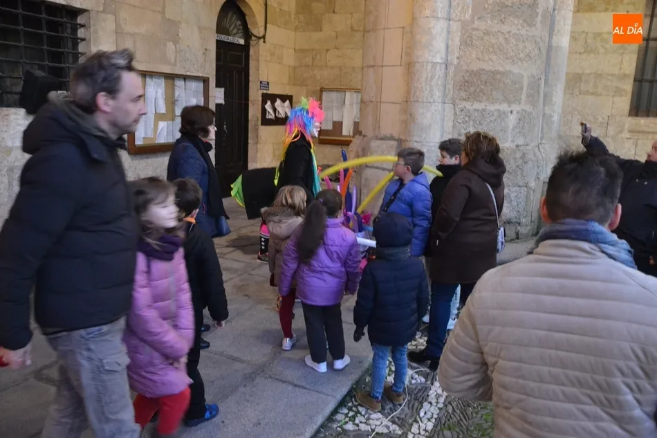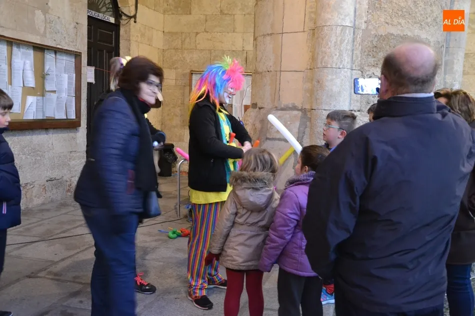 Junto al enviado de los Magos de Oriente, en los soportales de la Casa Consistorial también estuvieron los payasos Bobolino y Piruleta, para hacer entrega de forma gratuita a todos los niños que por allí pasaron globos con distintas formas. Como siempre, el Cartero Real regresará a Ciudad Rodrigo junto a sus jefes el próximo sábado, para tomar parte en la Gran Cabalgata que están preparando los Amigos de la Ilusión.