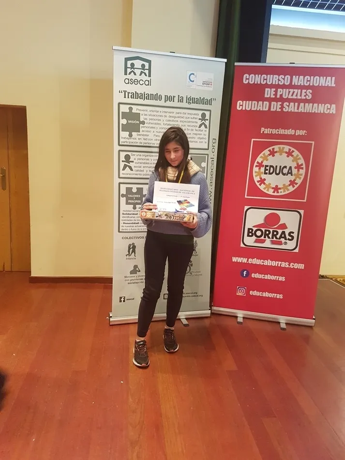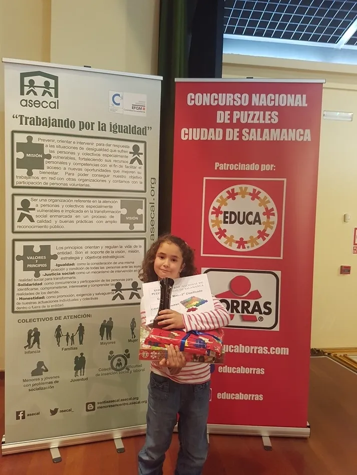 Finalizó el XVIII Concurso Nacional de Puzzles Ciudad de Salamanca organizado por Asecal y con el patrocinio de Educa y Borrás. Un certamen que batió todos los récords de participación con 327 participantes y además con la mayor participación exterior de otras provincias. Han estado representadas en esta edición las provincias de Guipúzcoa, Jaén, Málaga, Madrid, Toledo, Ciudad Real, León, Zamora, Ávila, Zaragoza y Valladolid, además de infinidad de concursantes de toda la provincia de Salamanca.