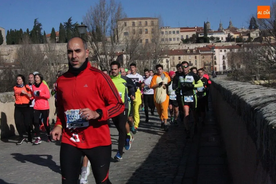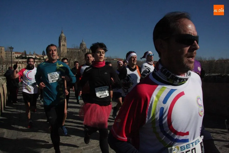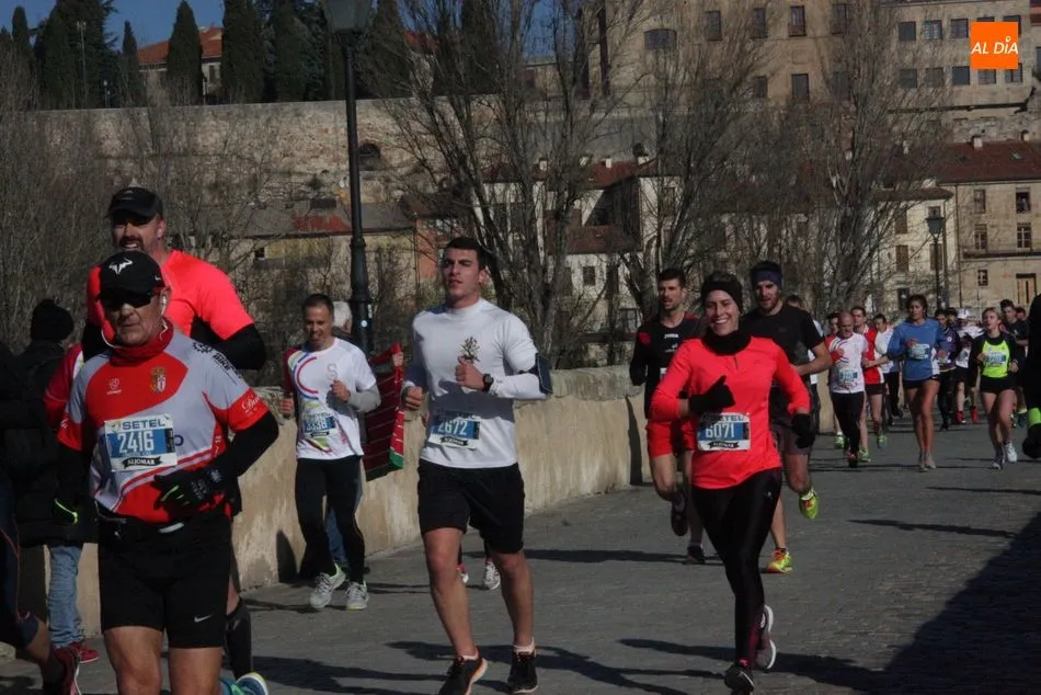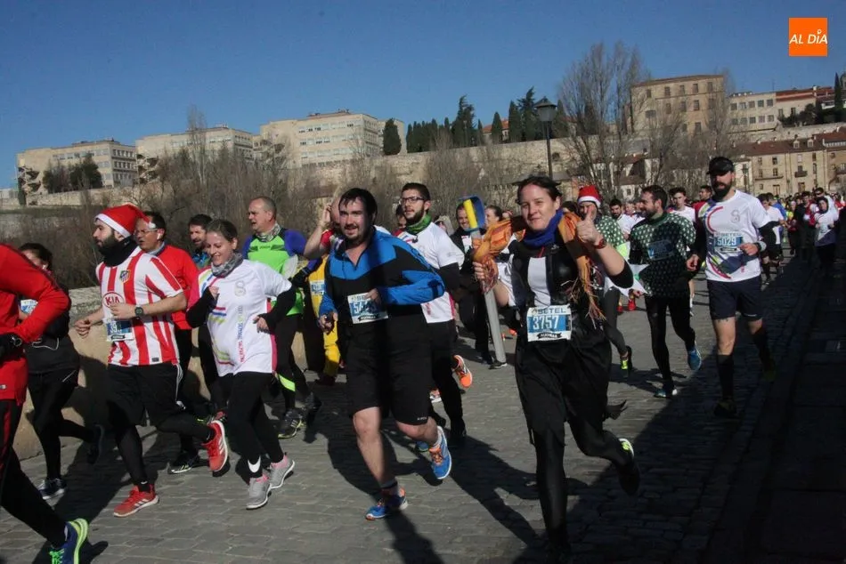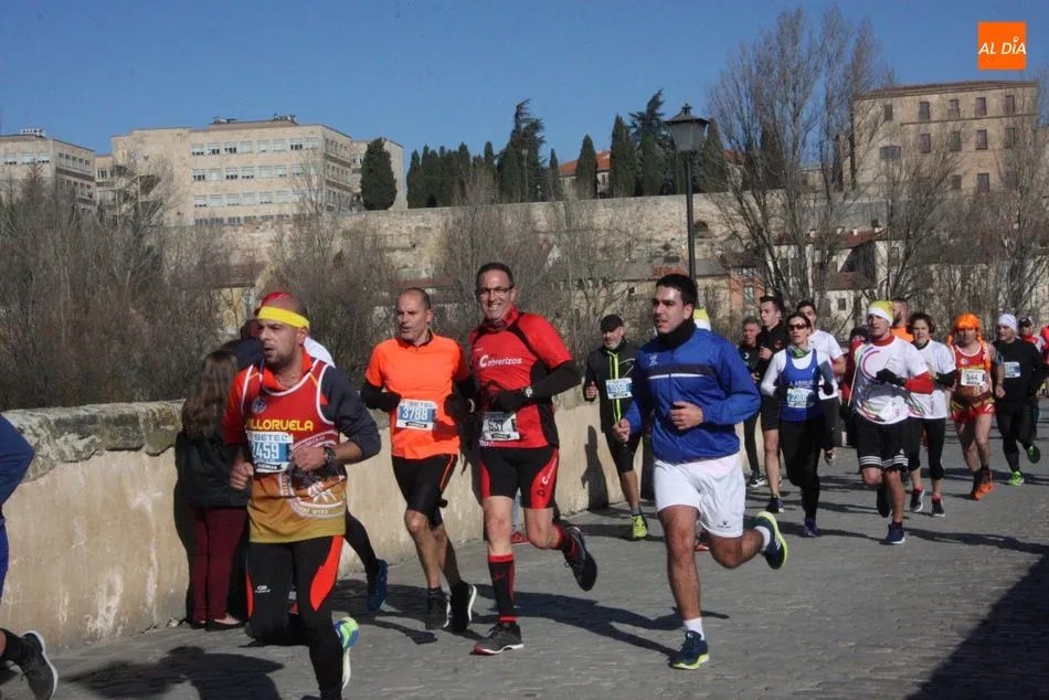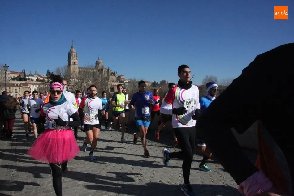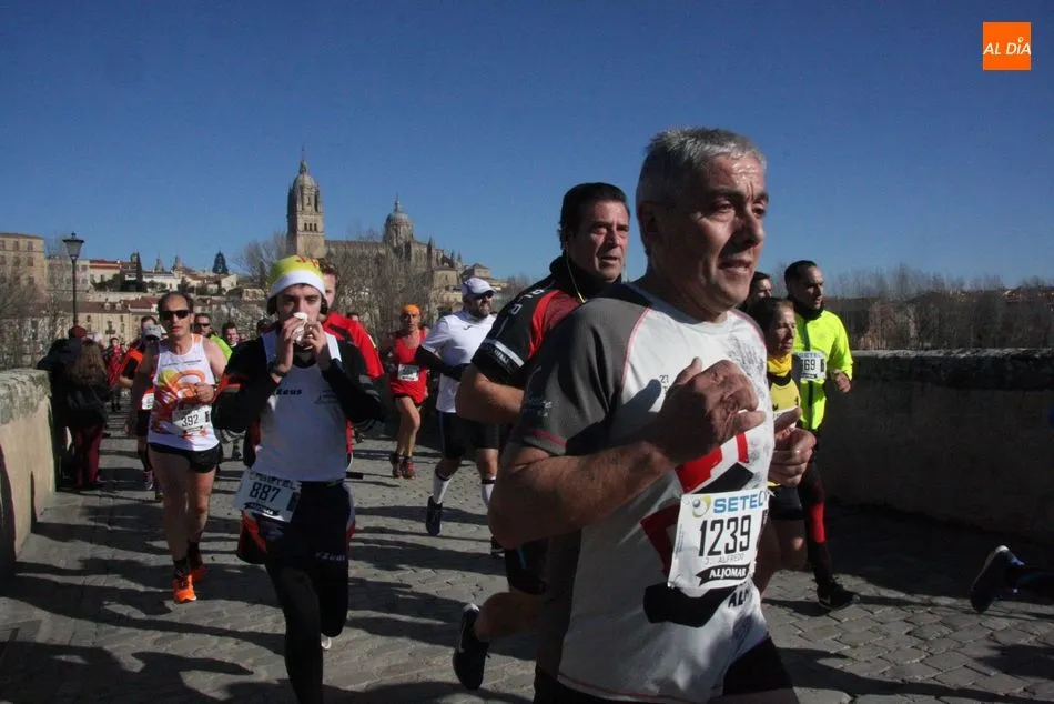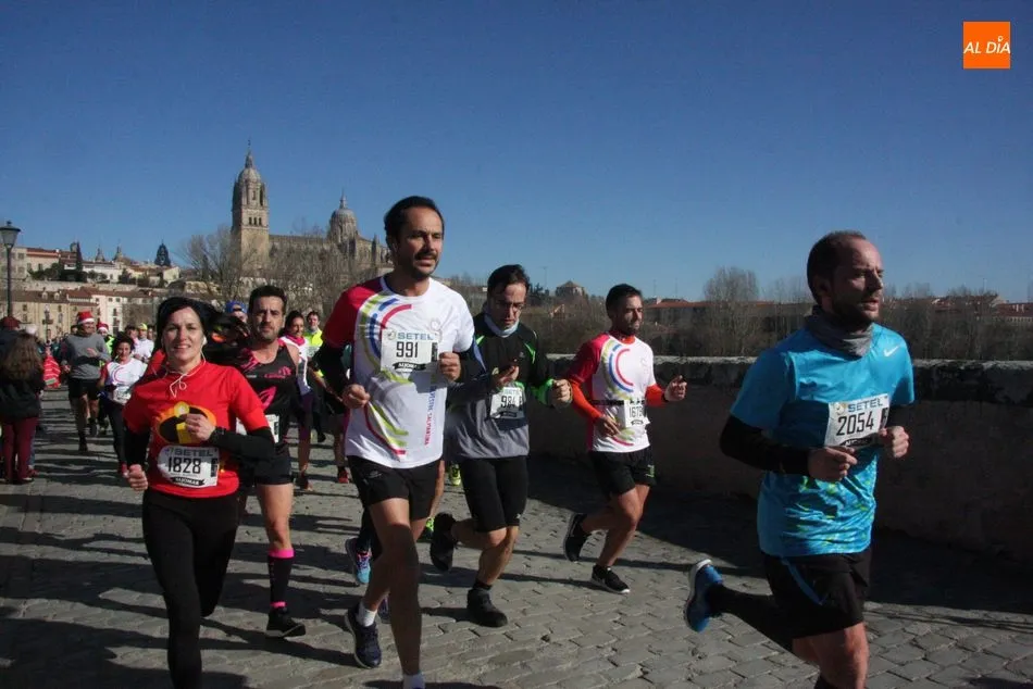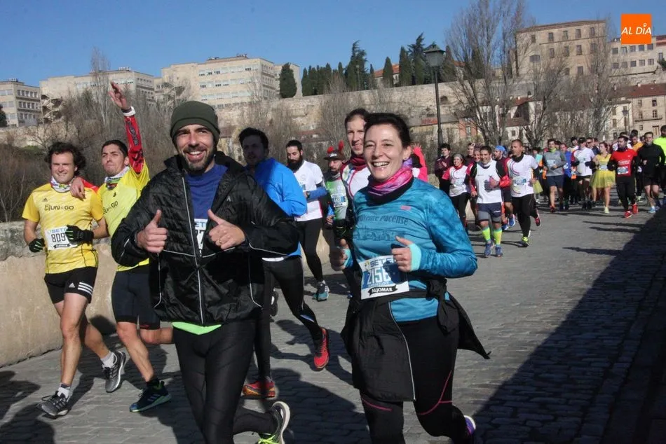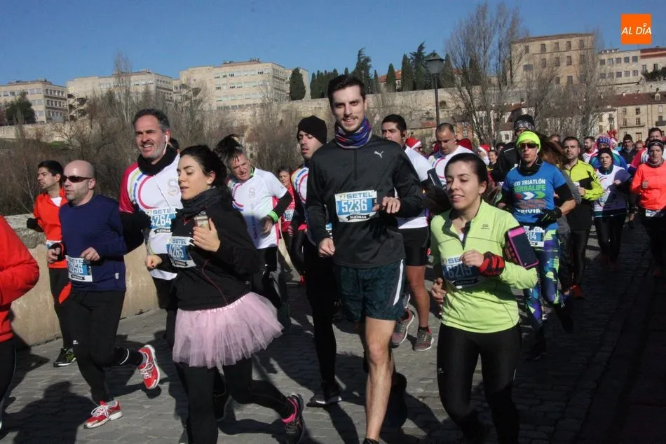 Gran ambiente en el Puente Romano con el paso de la San Silvestre Salmantina 2018