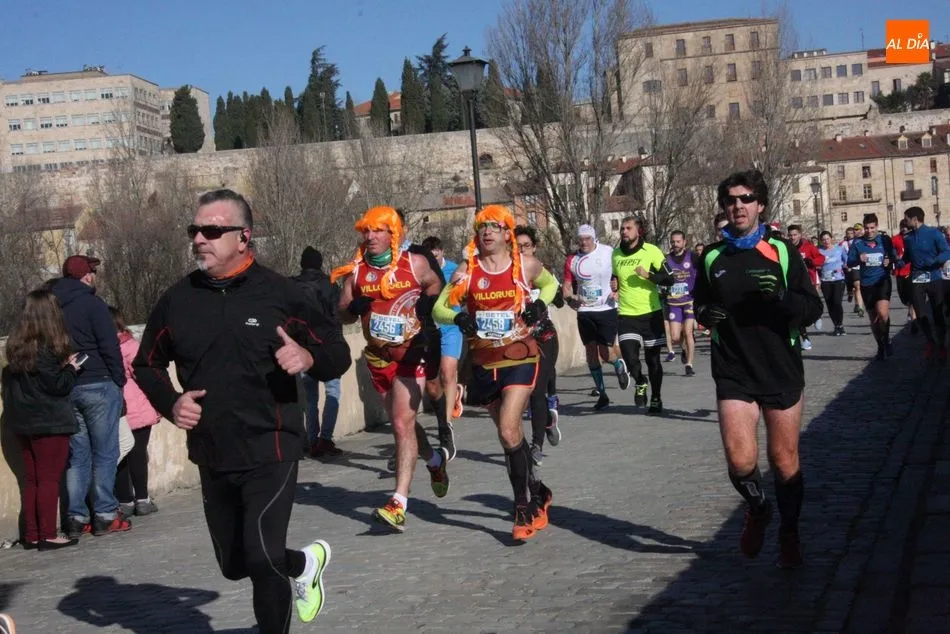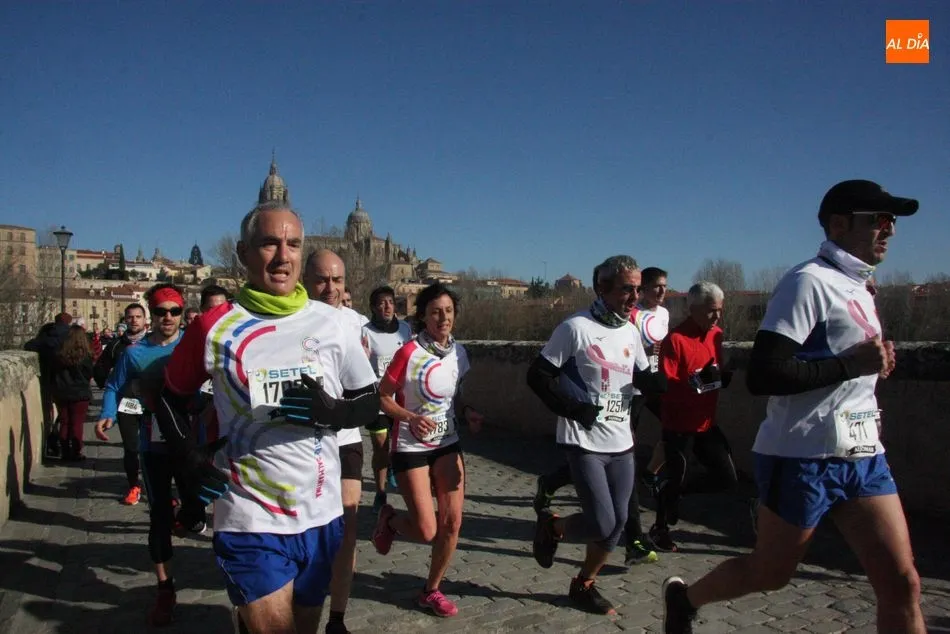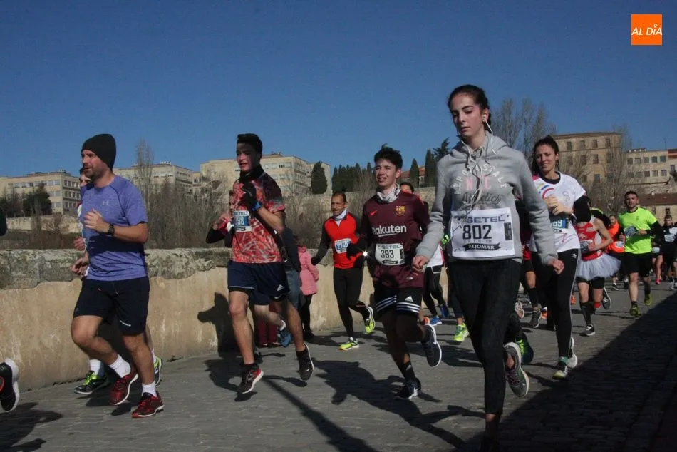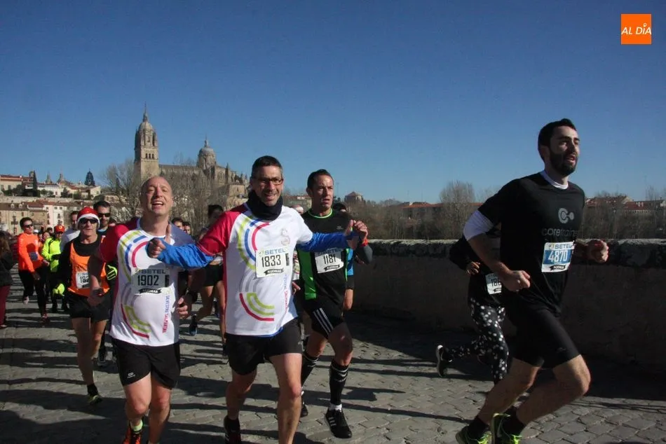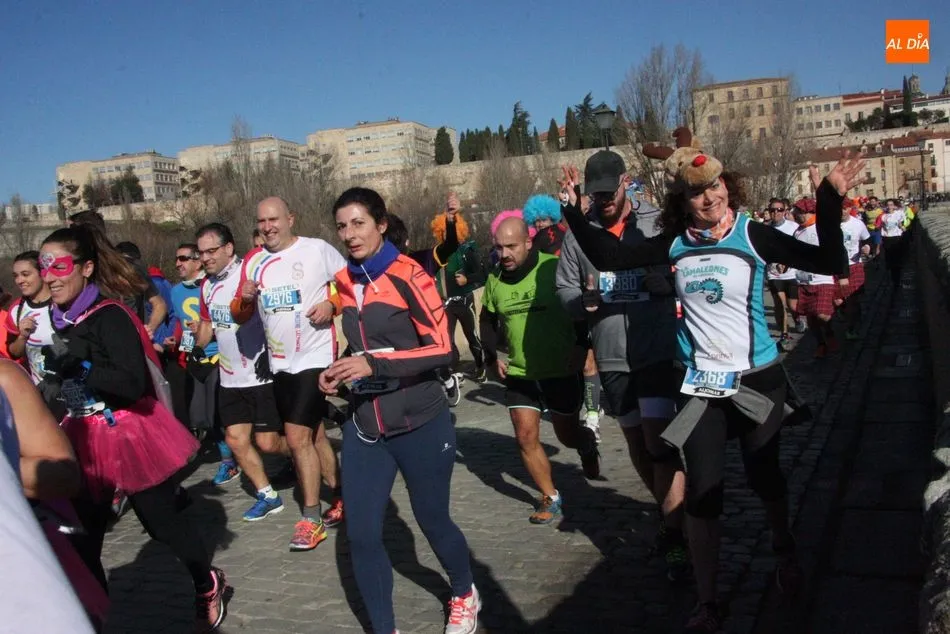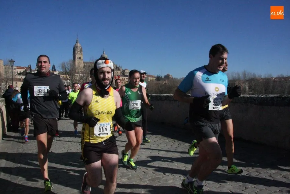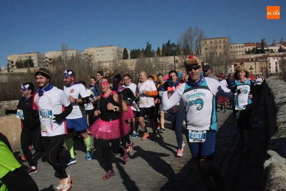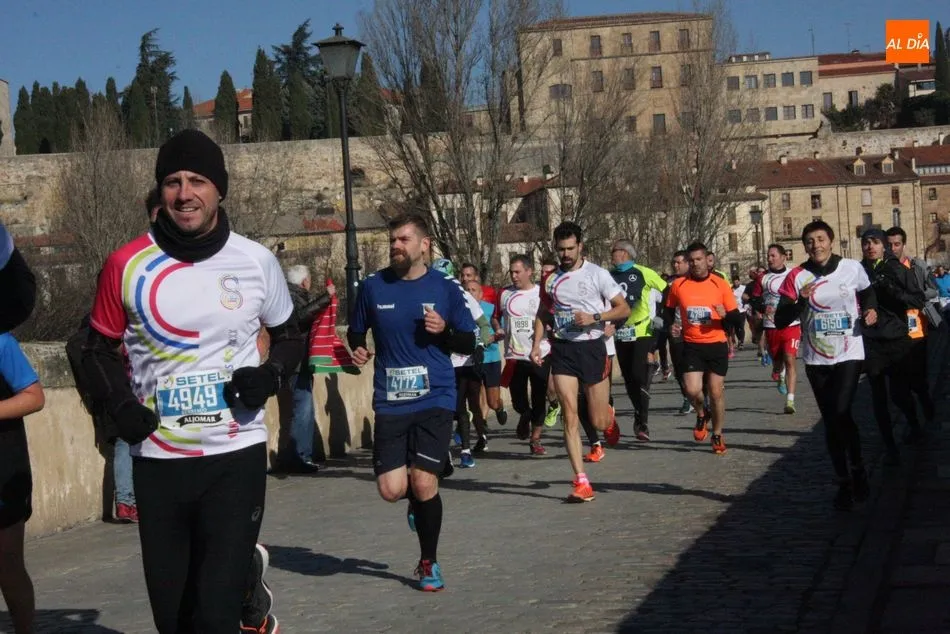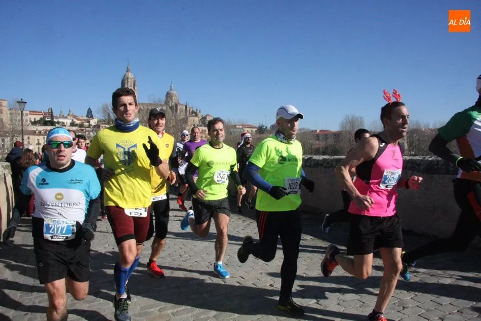 Gran ambiente en el Puente Romano con el paso de la San Silvestre Salmantina 2018