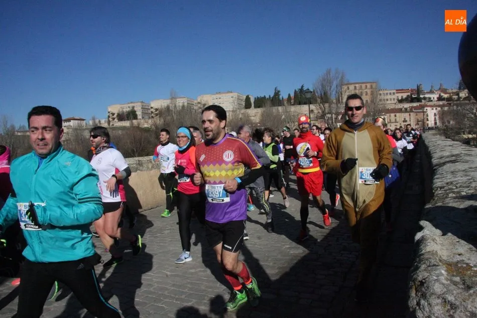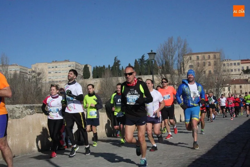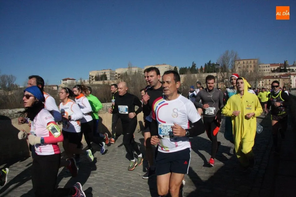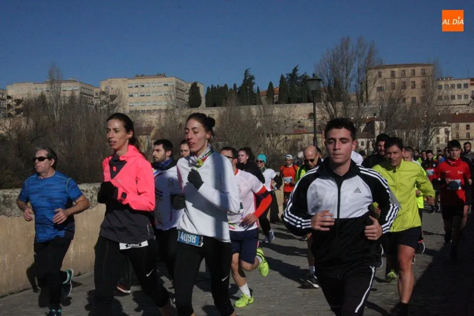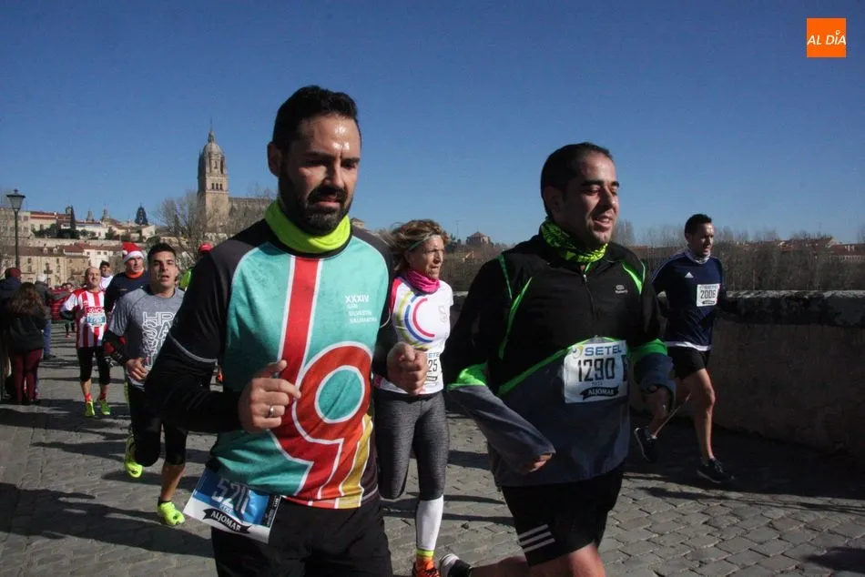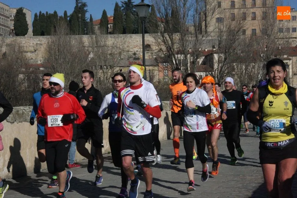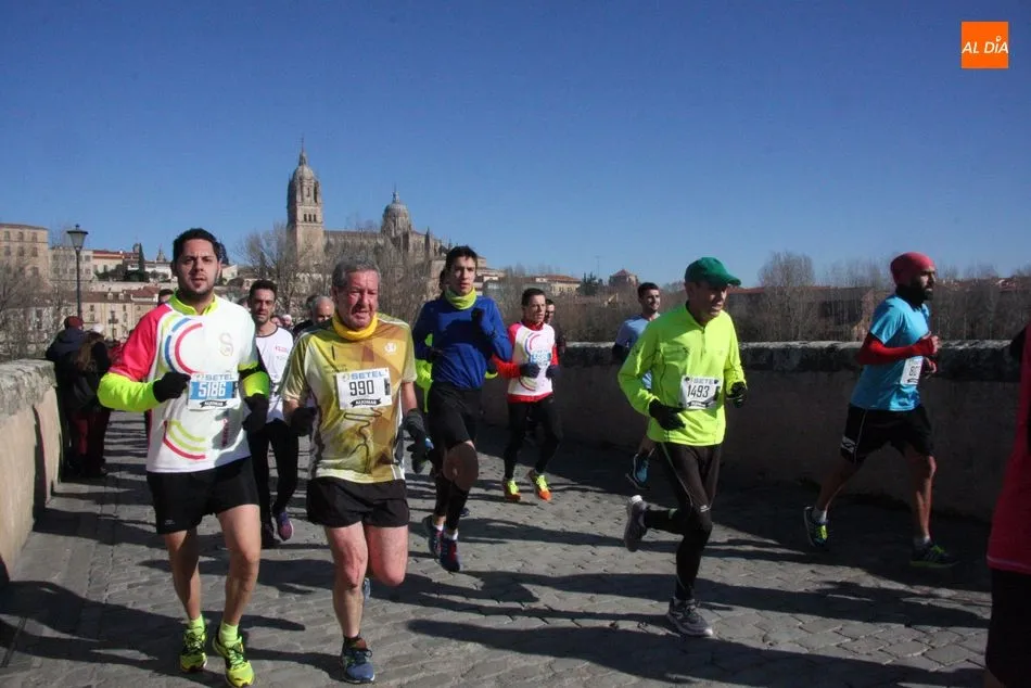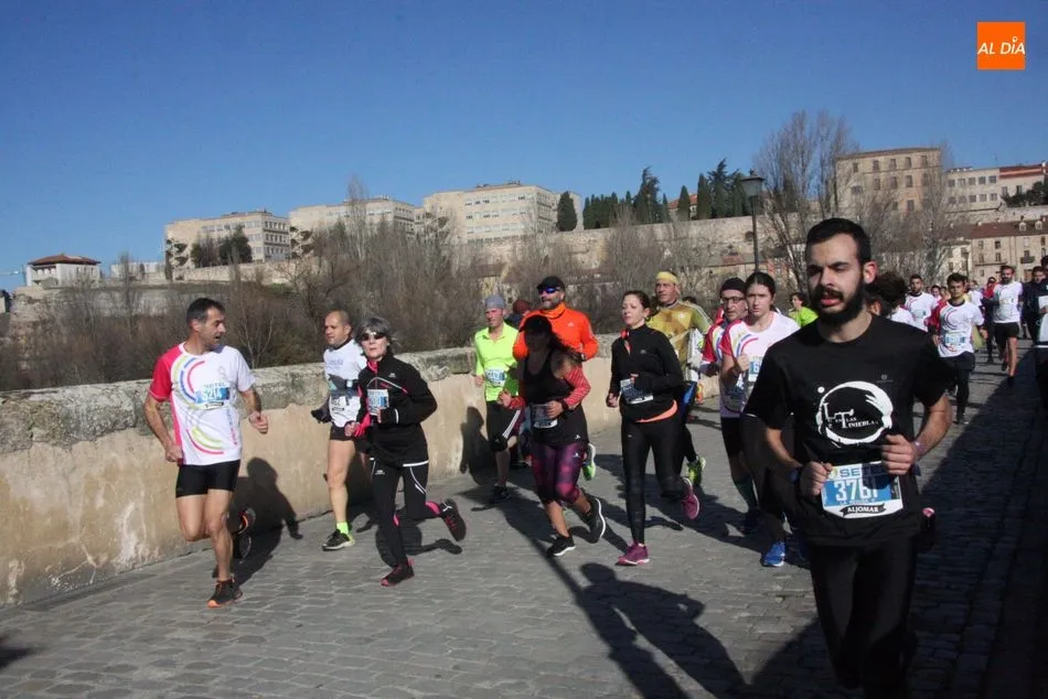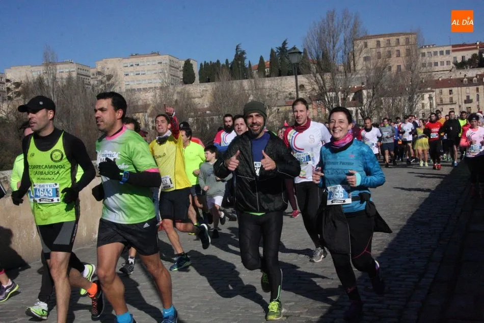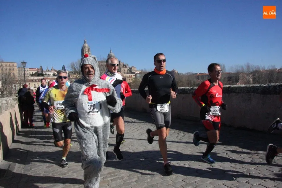 Gran ambiente en el Puente Romano con el paso de la San Silvestre Salmantina 2018