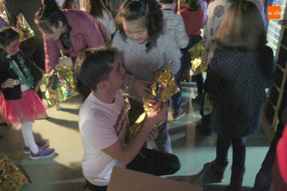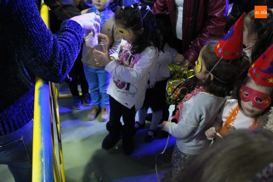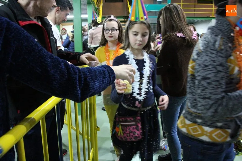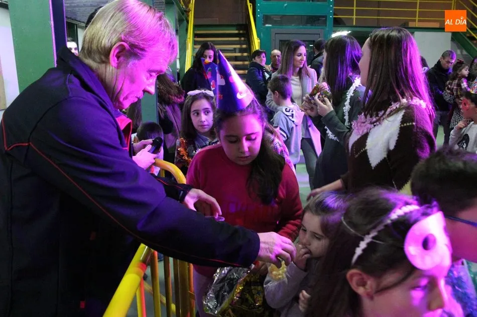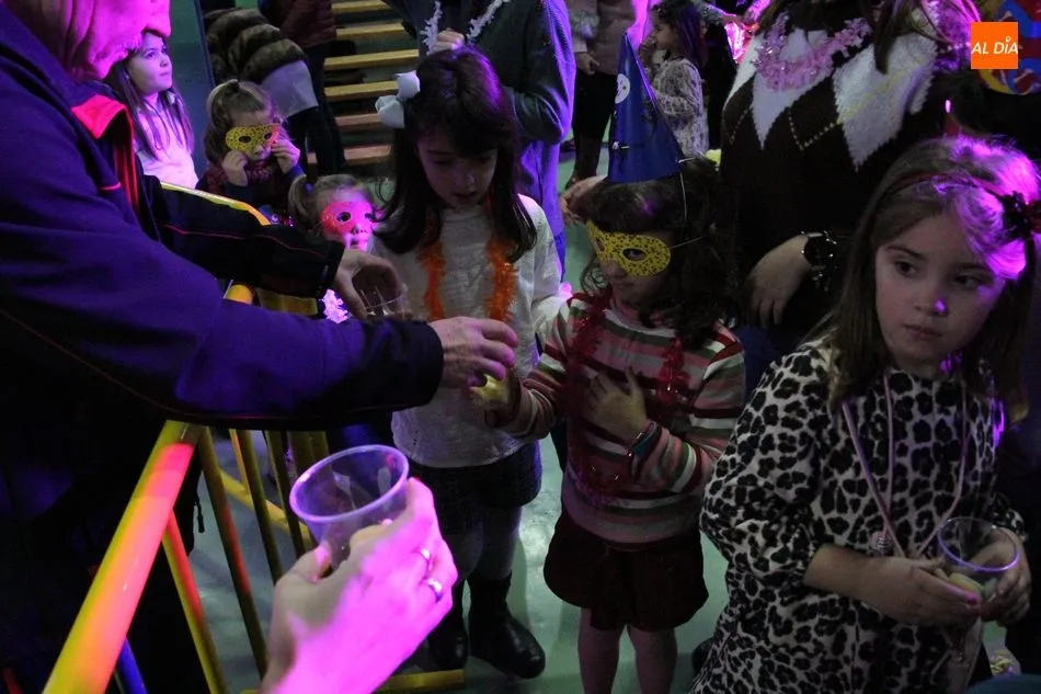 La fiesta estuvo ambientada por los animadores Gemma, Irene y Yeray, encargados de repartir las bolsas de golosinas y del cotillón, además de tener como colaboradores a los concejales del equipo de gobierno municipal, Nerea Pereira y Antonio Vicente. Tras dos horas de música y baile sonaban las campanadas de fin de año, momento que los pequeños celebraron con la toma de 12 gusanitos en sustitución de las tradicionales uvas, más acorde con el gusto de los niños, que, además, brindaron con refresco en lugar de cava.