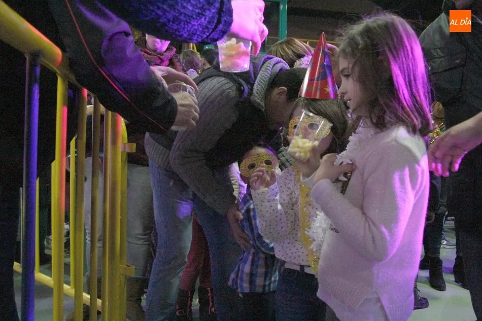 Al sonido de las campanadas, los pequeños sustituyeron uvas por gusanitos y cava por refrescos