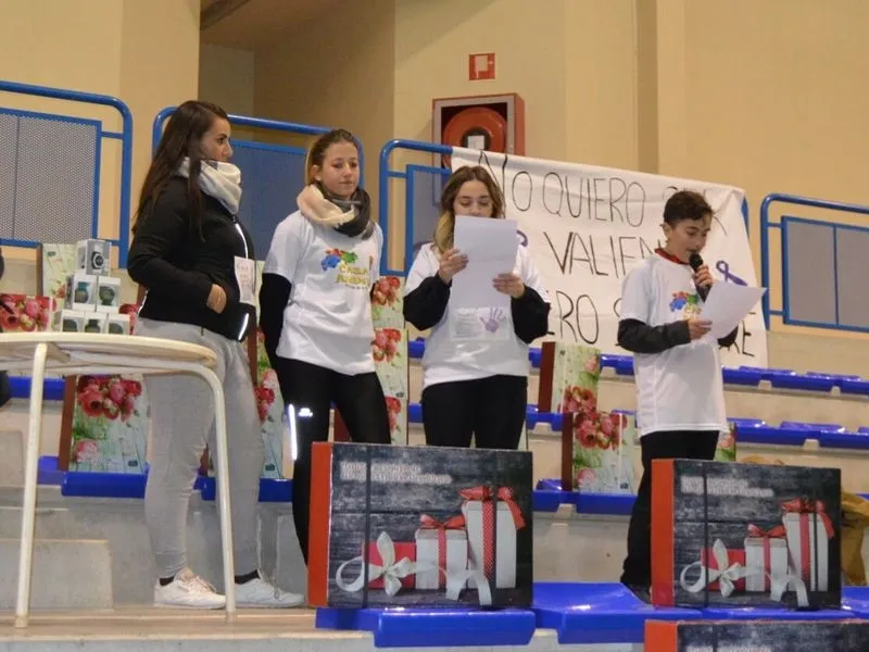 Antes de la entrega de los lotes a los corredores más veloces en sus categorías, y el sorteo de las 34 cestas y 6 relojes deportivos, los miembros de la Casa de la Juventud leyeron un emotivo manifiesto contra la violencia de género, acompañados del Tte. Alcalde Miguel Pérez, y los ediles José Pascua, Teresa Polo y Ruth Sánchez.