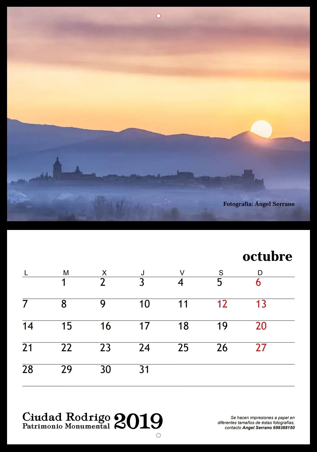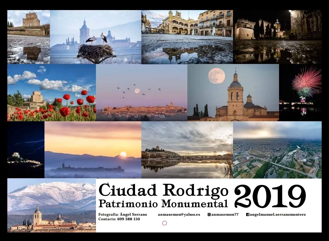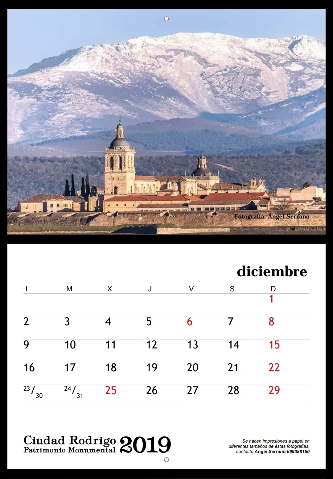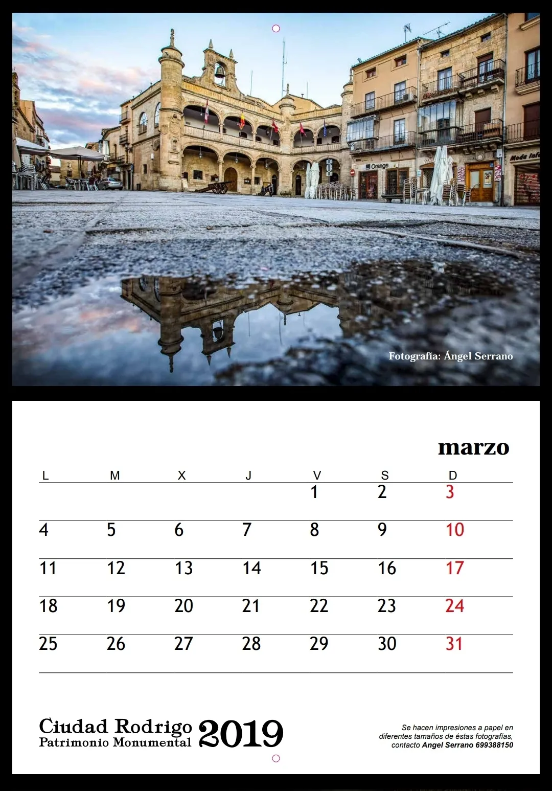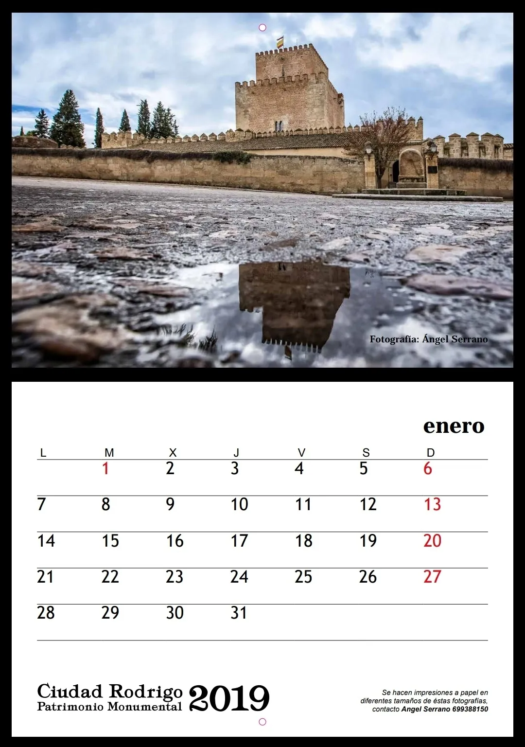 Mientras, en lo que se refiere al calendario ?actual?, es obra de Ángel Manuel Serrano, que ofrece 12 fotografías hechas por él recientemente donde ha querido ?dejar constancia de lo que es mi ciudad para mí, de lo que es Ciudad Rodrigo, de cómo lo veo, de toda su grandiosidad, de los rincones que tiene y del lugar tan magnífico que es?.