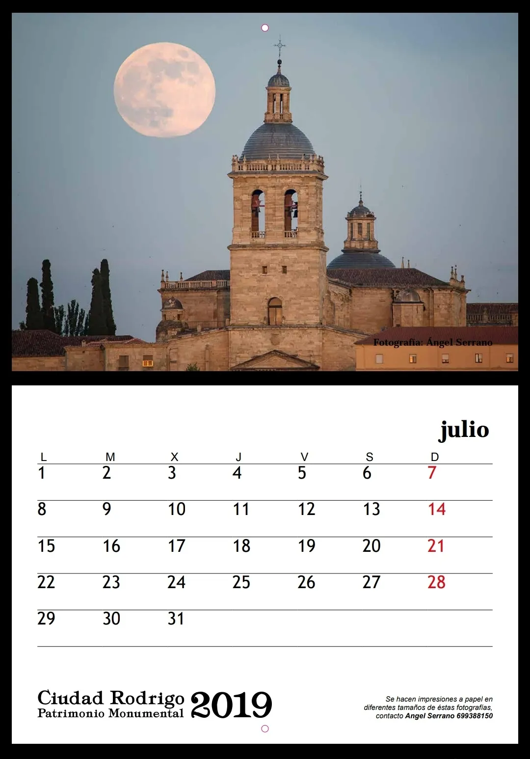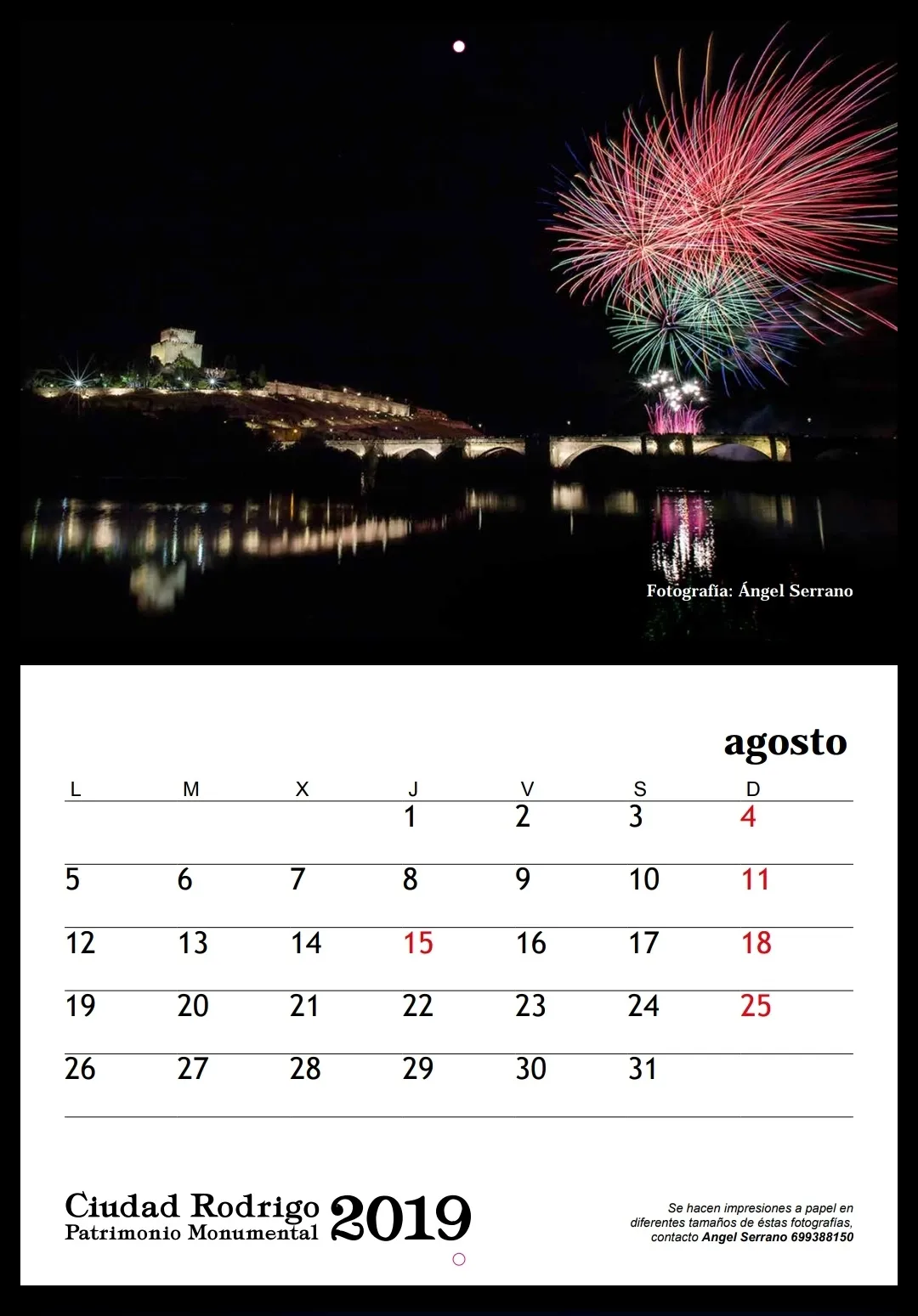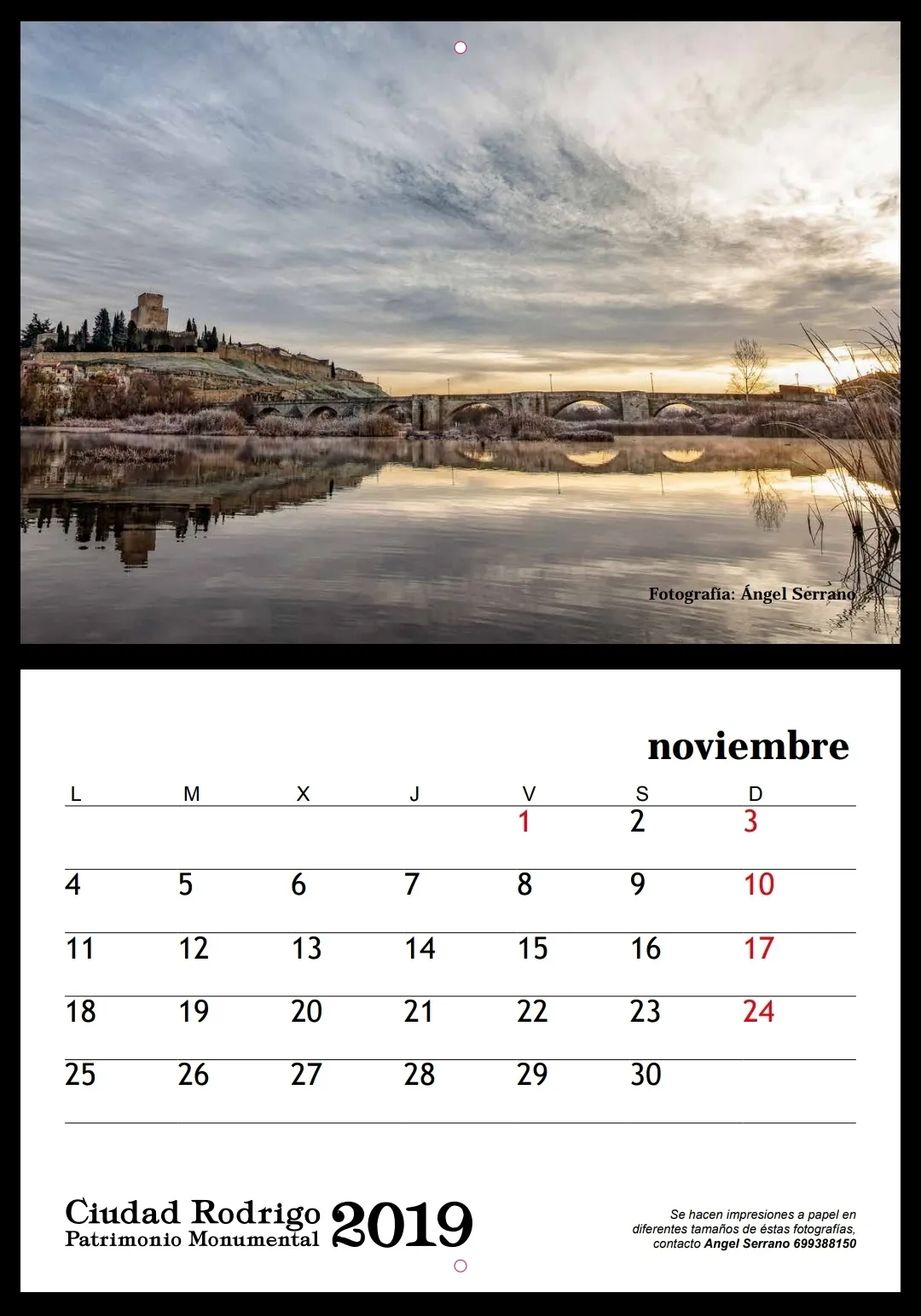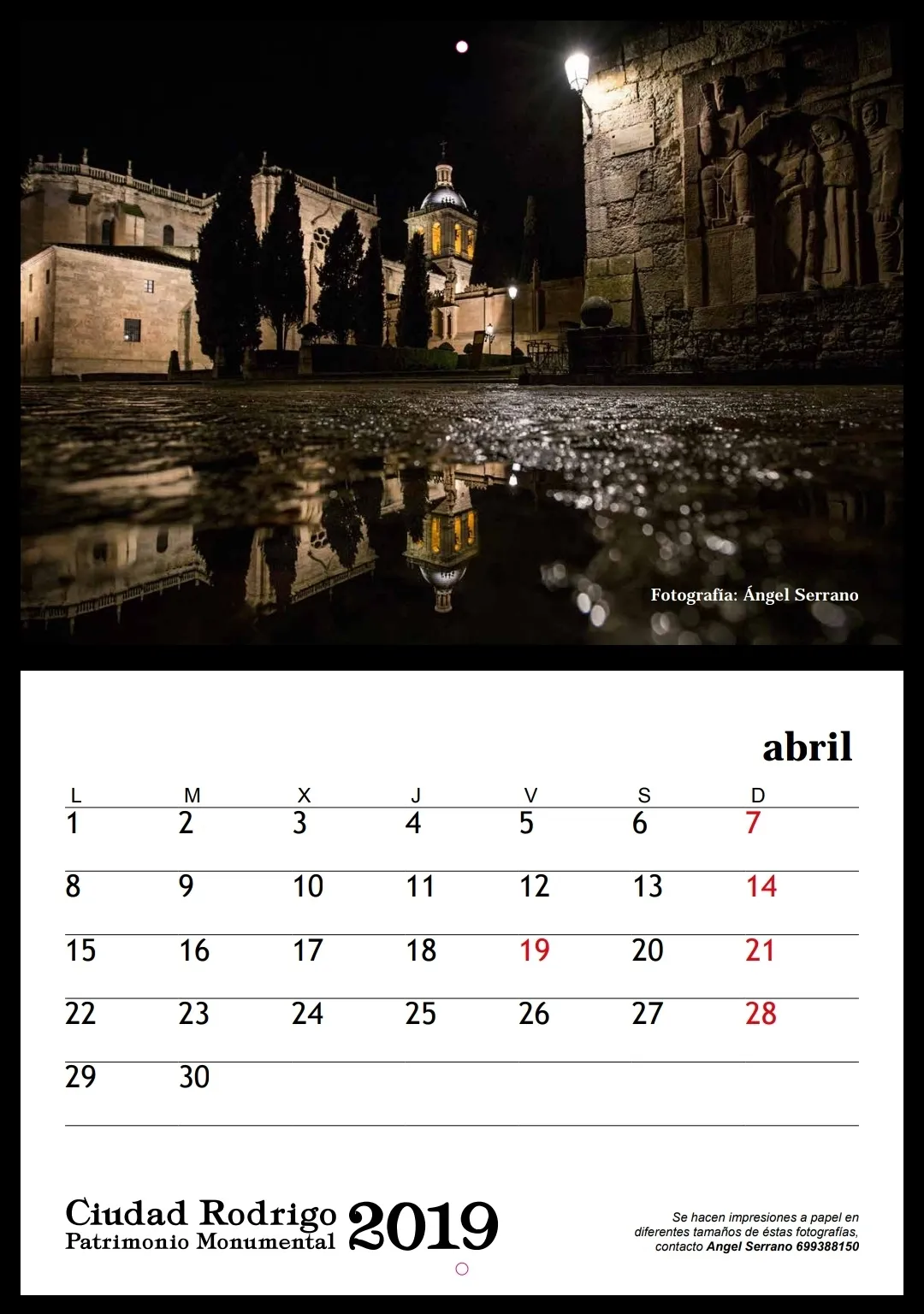 Mientras, en lo que se refiere al calendario ?actual?, es obra de Ángel Manuel Serrano, que ofrece 12 fotografías hechas por él recientemente donde ha querido ?dejar constancia de lo que es mi ciudad para mí, de lo que es Ciudad Rodrigo, de cómo lo veo, de toda su grandiosidad, de los rincones que tiene y del lugar tan magnífico que es?.