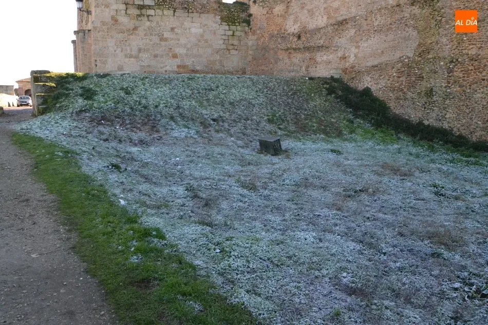 Las temperaturas bajo cero registradas durante la madrugada del lunes al martes hicieron que Ciudad Rodrigo amaneciese el Día de Año Nuevo con un notorio manto blanco. Como es lógico, según el sol fue haciendo acto de presencia, ese manto se fue retirando a lo largo de la mañana.
