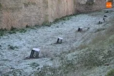 Sin embargo, hay zonas donde a la hora de comer no había llegado ni un rayo de sol, con lo cual todavía conservaban todo el color blanco, como es el caso del tramo del foso de la muralla comprendido entre el Registro y las Puertas de Amayuelas, como se puede comprobar en las imágenes.
