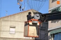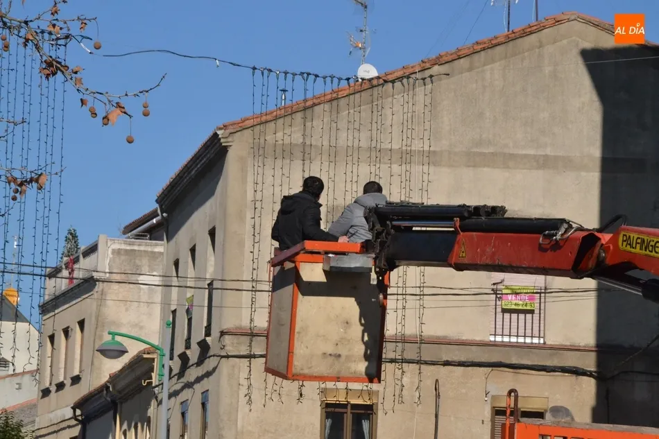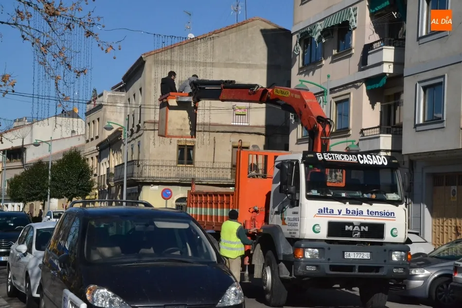 Por otro lado, trabajadores de la empresa Electricidad Casado procedieron a recoger durante la mañana del viernes las cortinas de leds de la calle Laguna, para que así la parte más alta de las carrozas de los Magos no golpee contra las mismas.