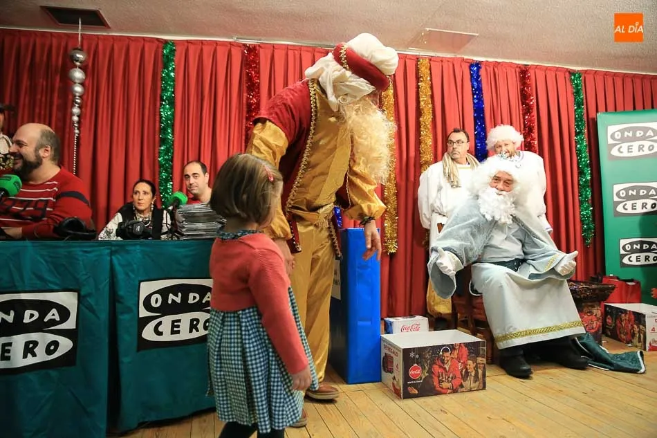 El salón actos de la ONCE ha sido escenario este viernes del programa ?Salamanca en la Onda?, de Onda Cero Salamanca, que ha recibido la visita de los Reyes Magos. Los pequeños han podido charlar con Sus Majestades, que llegaban desde Oriente pasando por CGB Informática, donde eran recogidos por vehículos de época del Museo de Automoción.