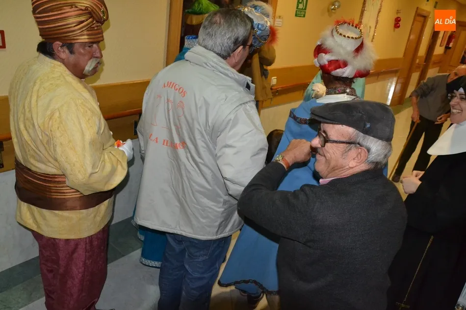 Por un lado, de la mano de los Amigos de la Ilusión, los Reyes Magos estuvieron en cuatro lugares diferentes, comenzando la ruta en la Residencia Caracillo. De ahí se dirigieron al centro histórico, donde su primera parada fue la Residencia de las Hermanitas de los Ancianos Desamparados (San José), donde visitaron las cuatro salas donde había ancianos, todo ello con bastante animación gracias especialmente a uno de los Amigos de la Ilusión.