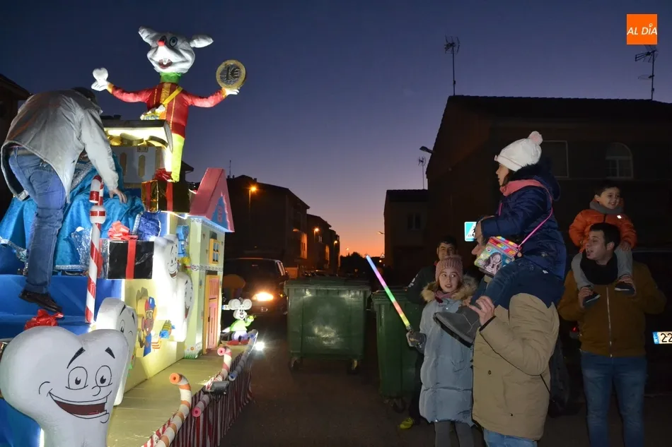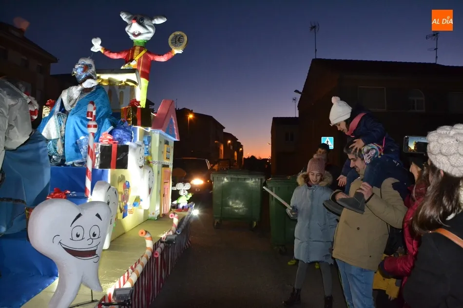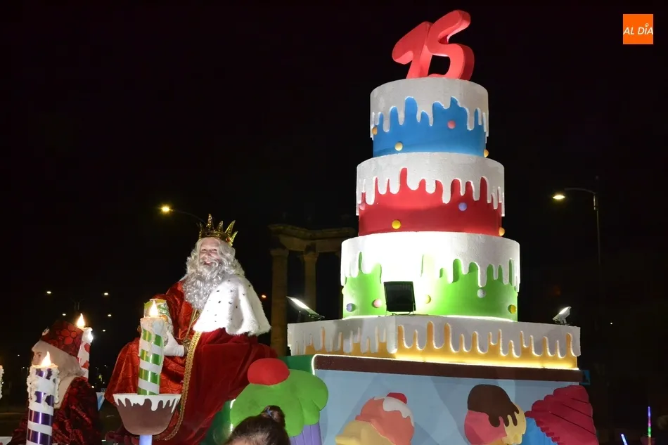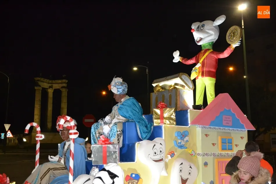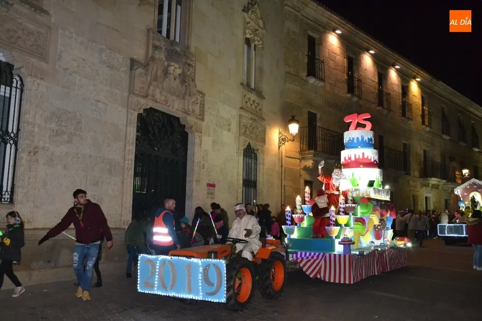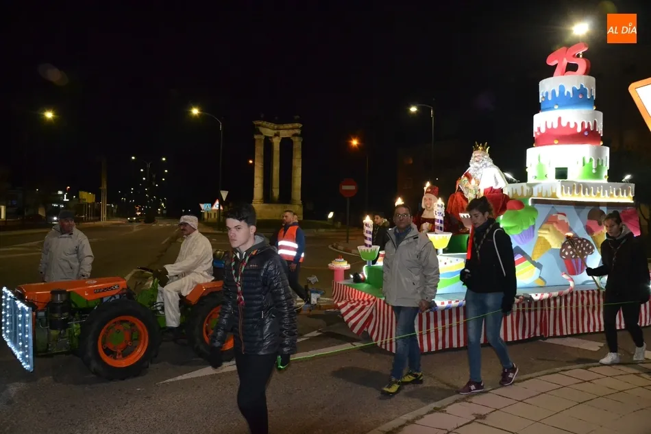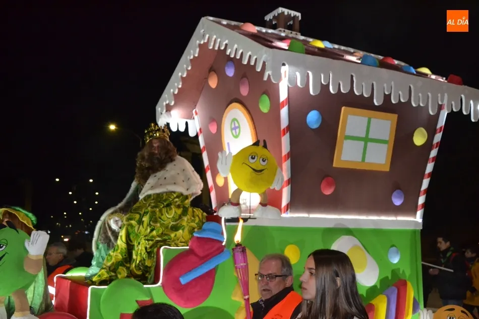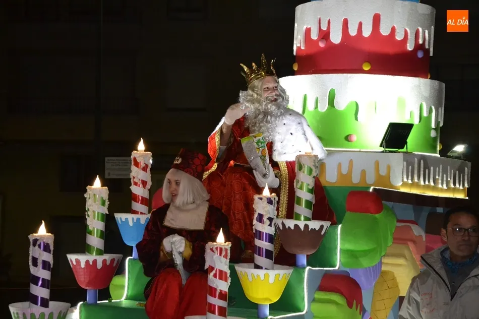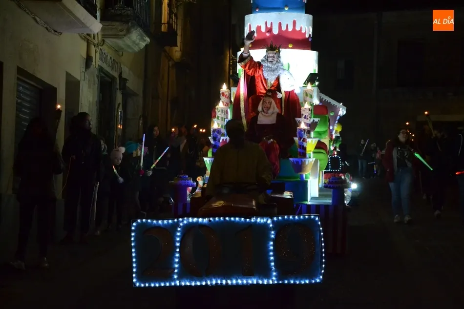 Este año, las carrozas han tenido un toque muy dulce. En el caso de Melchor, su carroza era una gran tarta; en el caso de Gaspar, una casita de chocolate; y en el caso de Baltasar, la casita del Ratoncito Pérez, estando repleta de dientes sonrientes. Las tres carrozas tenían este año un elemento común: una lona en su parte posterior en la que aparecía el logo del 75º Aniversario de la Declaración de Ciudad Rodrigo como Conjunto Histórico-Artístico. Los Reyes Magos se sumaron a este cumpleaños con otro detalle más: un ?75? encima de la tarta de la carroza de Melchor.