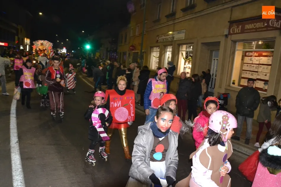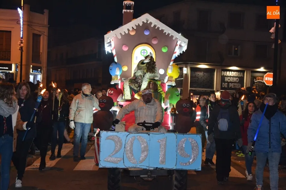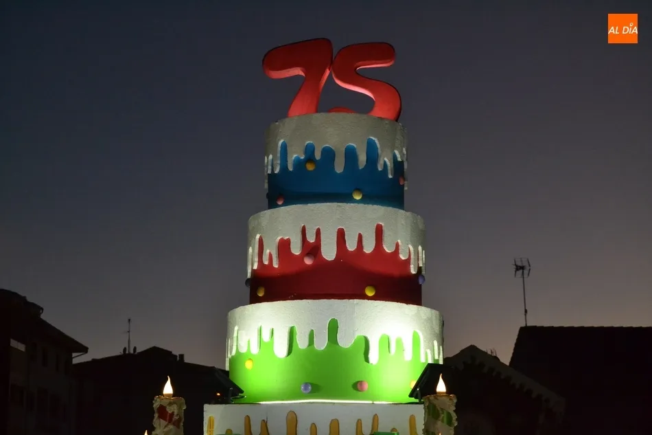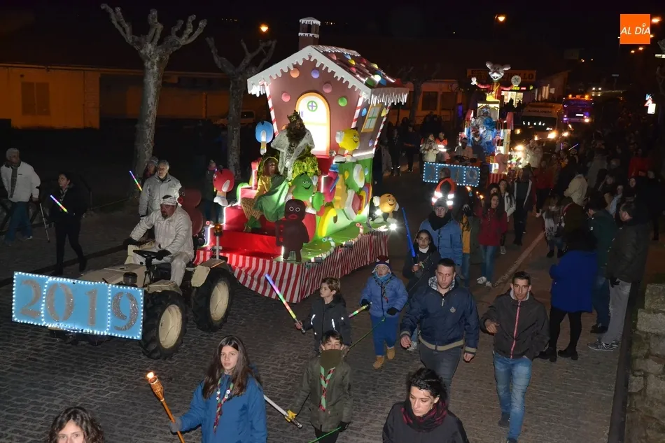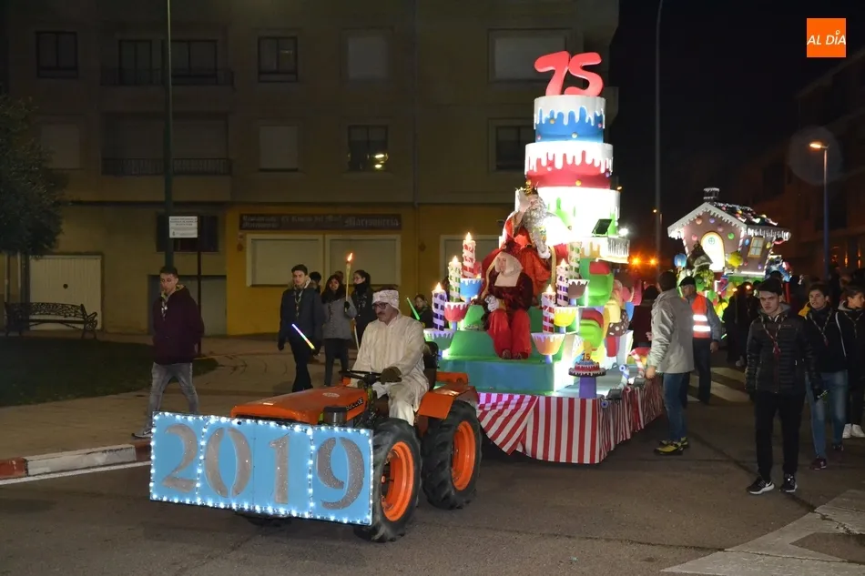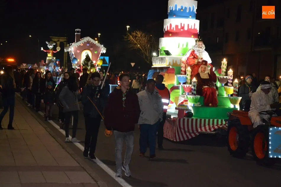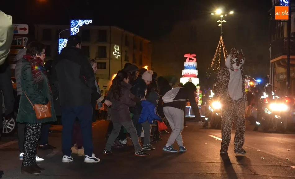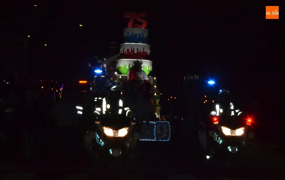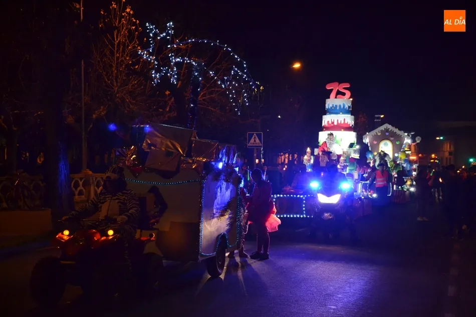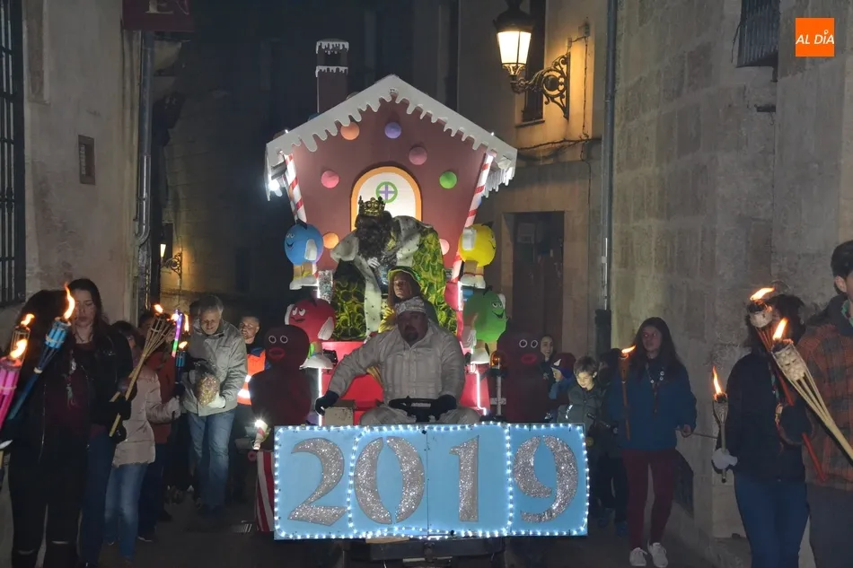 Este año, las carrozas han tenido un toque muy dulce. En el caso de Melchor, su carroza era una gran tarta; en el caso de Gaspar, una casita de chocolate; y en el caso de Baltasar, la casita del Ratoncito Pérez, estando repleta de dientes sonrientes. Las tres carrozas tenían este año un elemento común: una lona en su parte posterior en la que aparecía el logo del 75º Aniversario de la Declaración de Ciudad Rodrigo como Conjunto Histórico-Artístico. Los Reyes Magos se sumaron a este cumpleaños con otro detalle más: un ?75? encima de la tarta de la carroza de Melchor.
