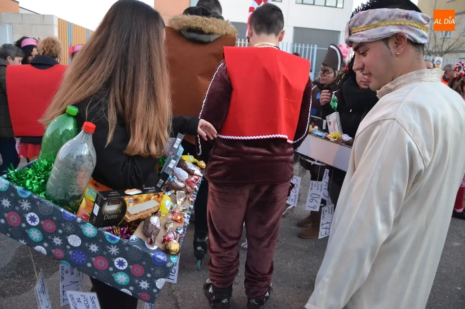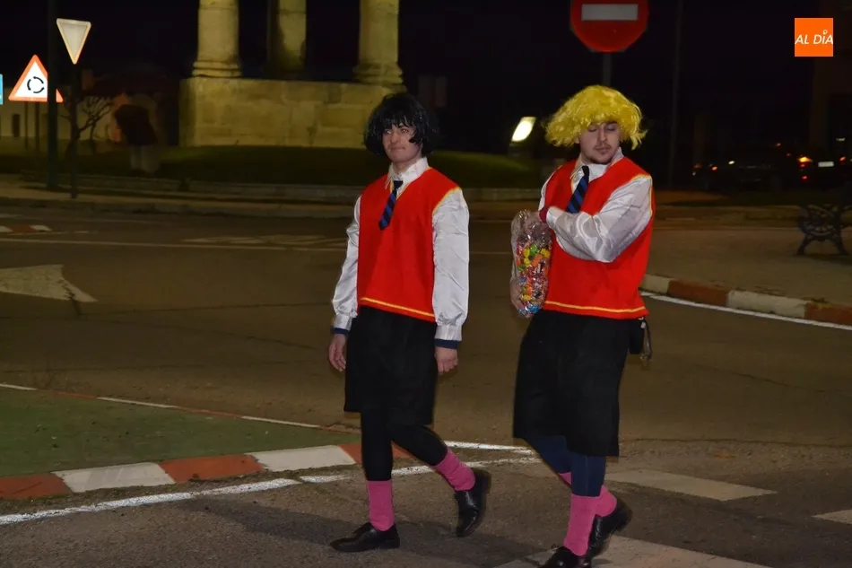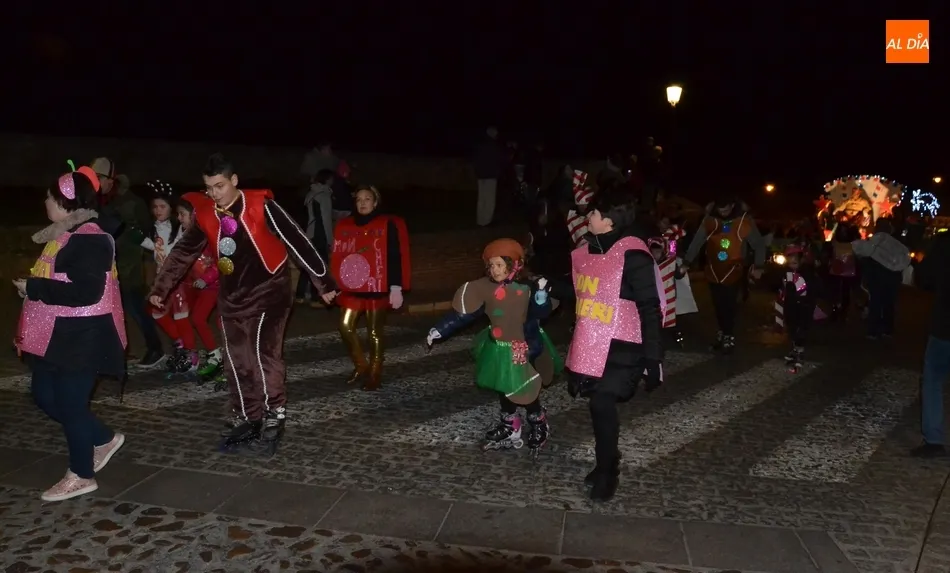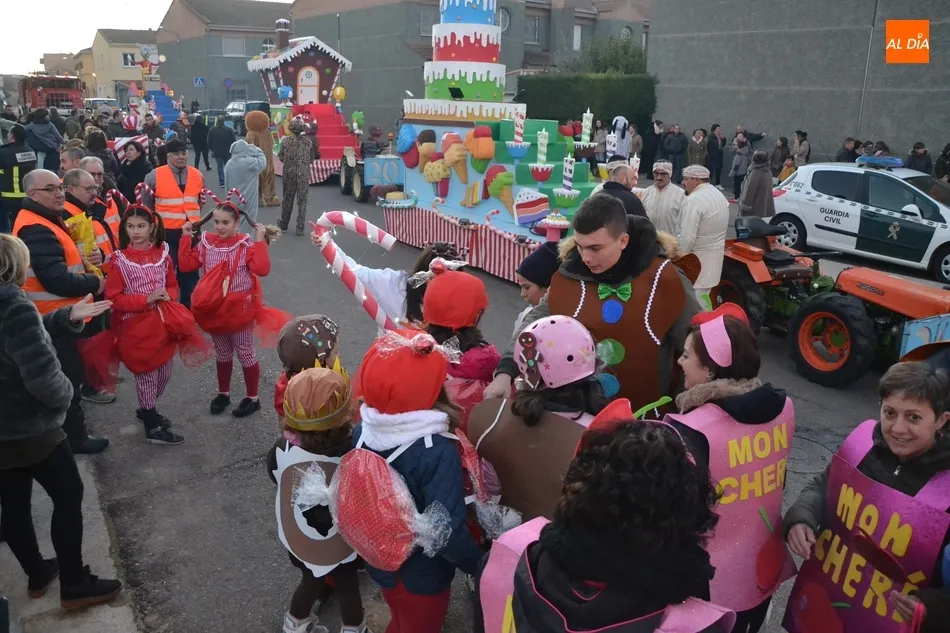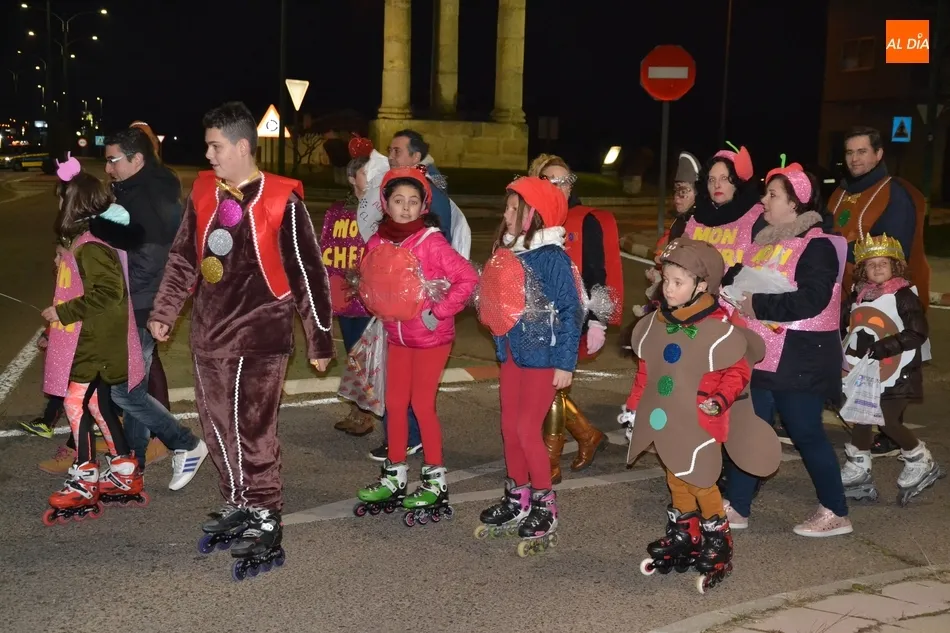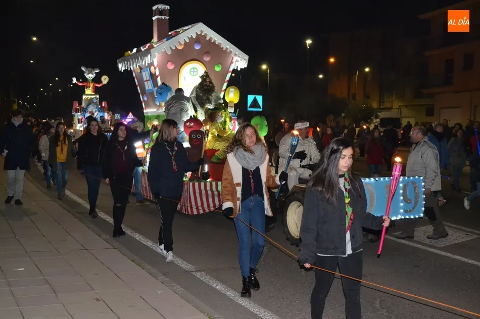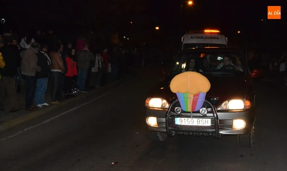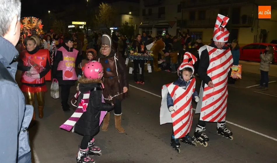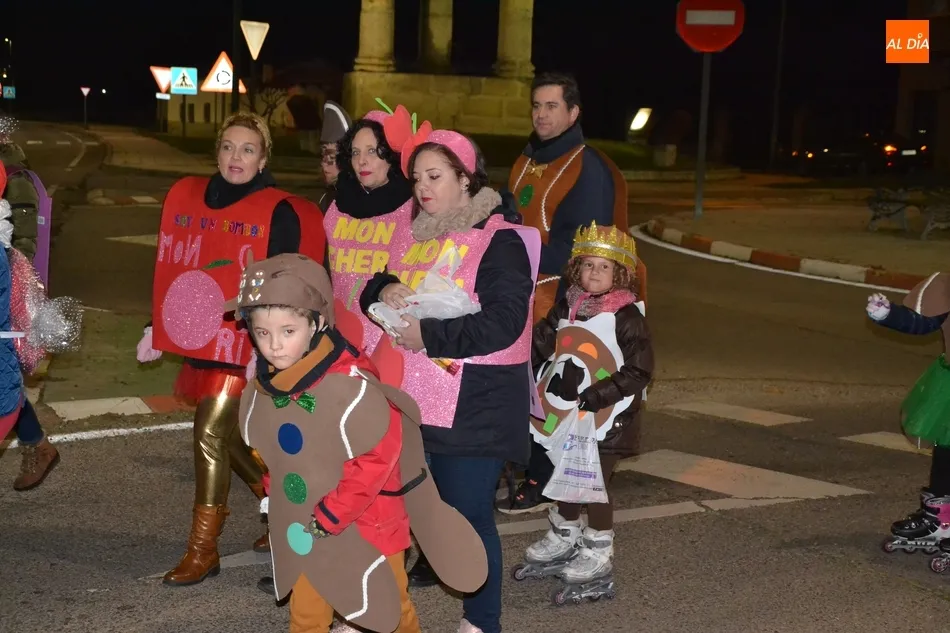Este año, las carrozas han tenido un toque muy dulce. En el caso de Melchor, su carroza era una gran tarta; en el caso de Gaspar, una casita de chocolate; y en el caso de Baltasar, la casita del Ratoncito Pérez, estando repleta de dientes sonrientes. Las tres carrozas tenían este año un elemento común: una lona en su parte posterior en la que aparecía el logo del 75º Aniversario de la Declaración de Ciudad Rodrigo como Conjunto Histórico-Artístico. Los Reyes Magos se sumaron a este cumpleaños con otro detalle más: un ?75? encima de la tarta de la carroza de Melchor.