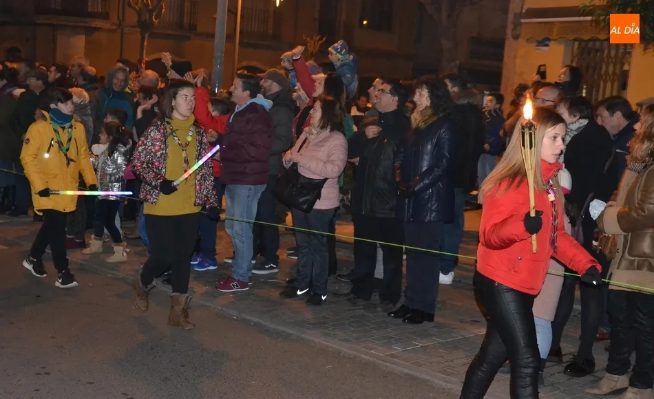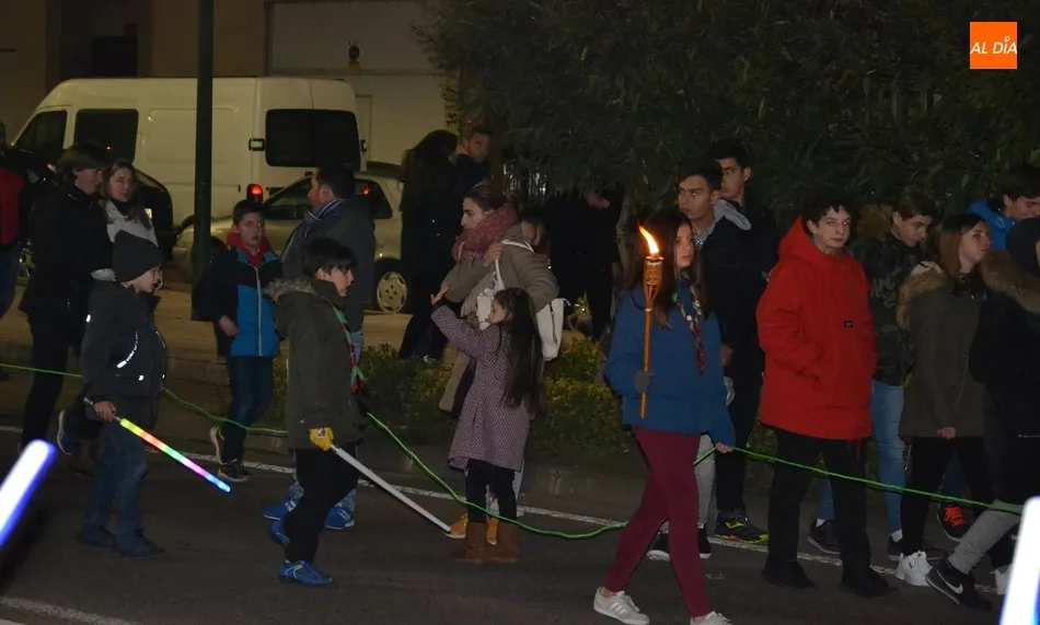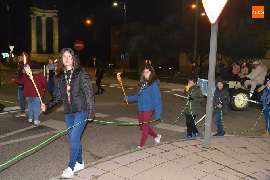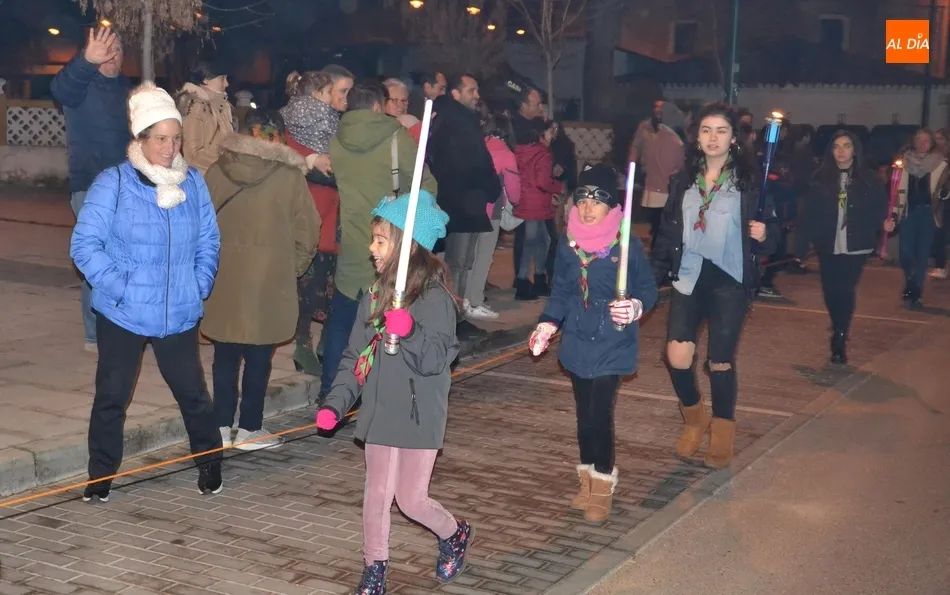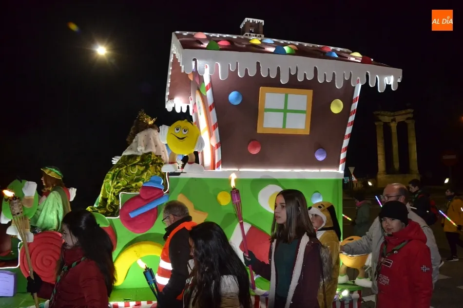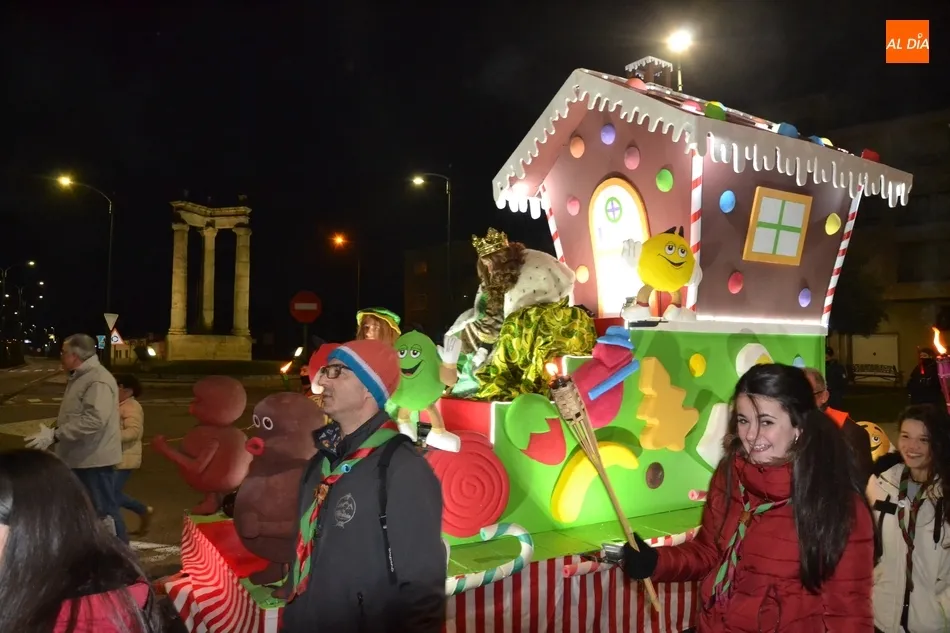 Durante el trayecto, los Magos fueron acompañados como es tradición por integrantes del Grupo Scout Kennedy, quienes iban portando antorchas (además iban sujetando una cuerda para evitar que nadie se introdujese entre las carrozas), contando además con la escolta justo por delante de dos motoristas de Tráfico de la Guardia Civil.