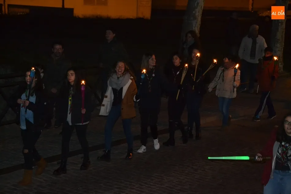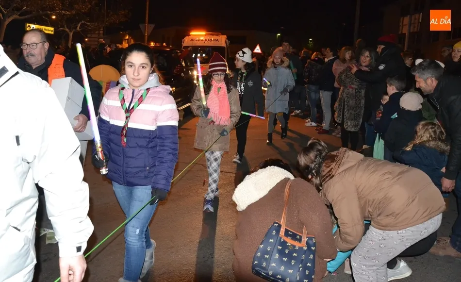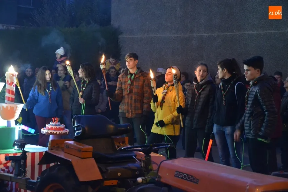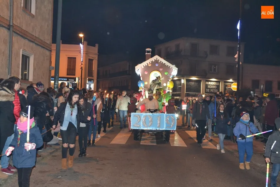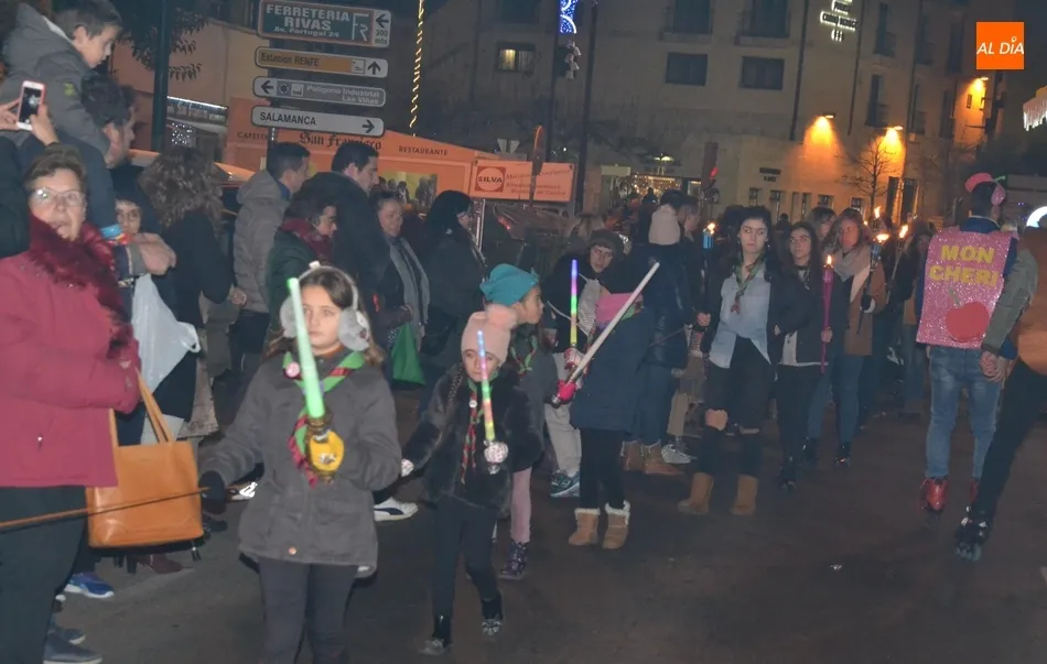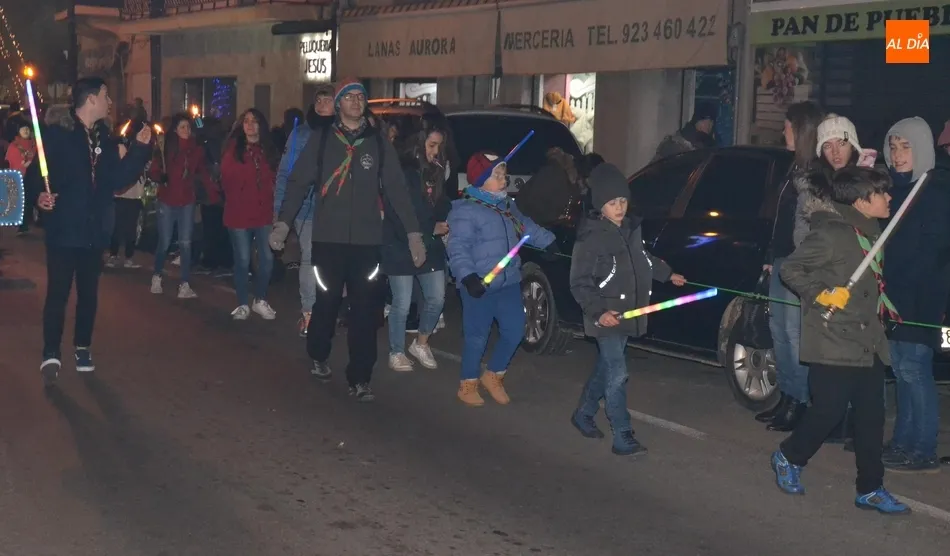 Durante el trayecto, los Magos fueron acompañados como es tradición por integrantes del Grupo Scout Kennedy, quienes iban portando antorchas (además iban sujetando una cuerda para evitar que nadie se introdujese entre las carrozas), contando además con la escolta justo por delante de dos motoristas de Tráfico de la Guardia Civil.