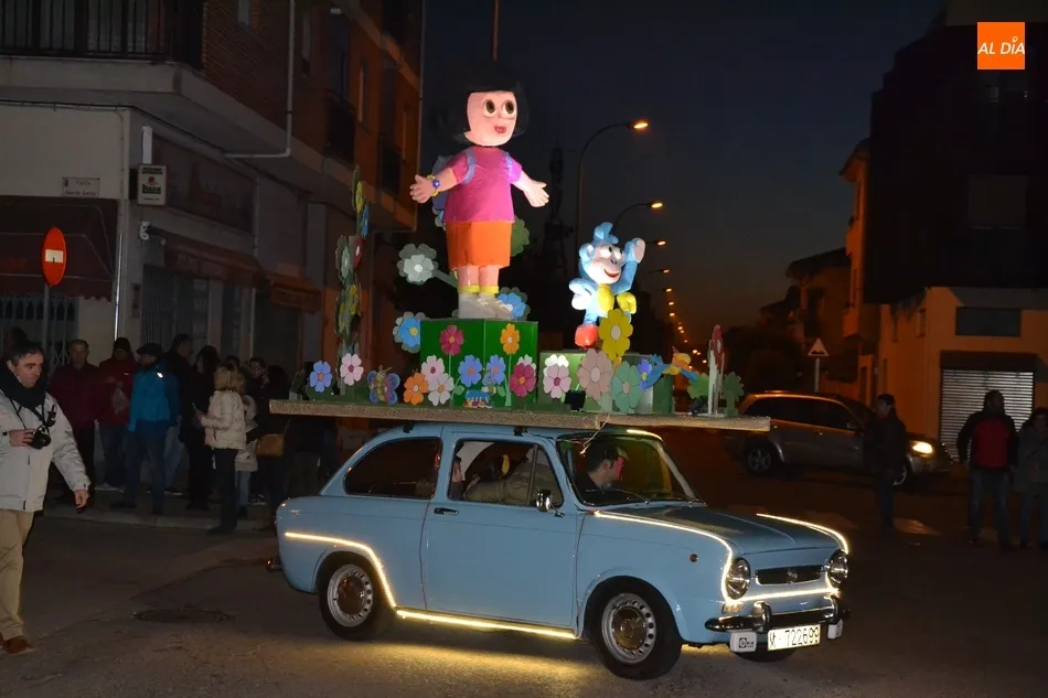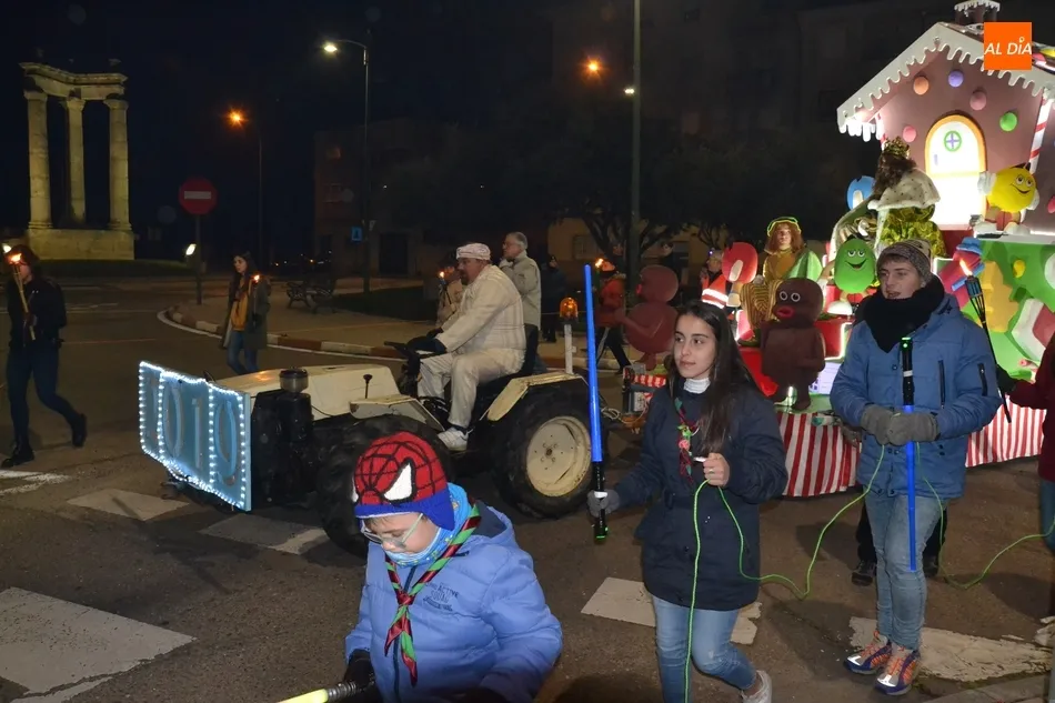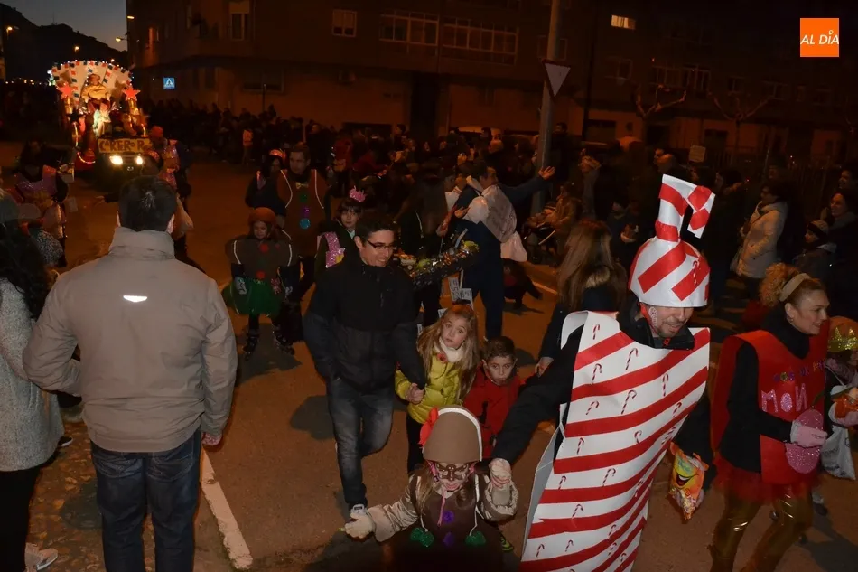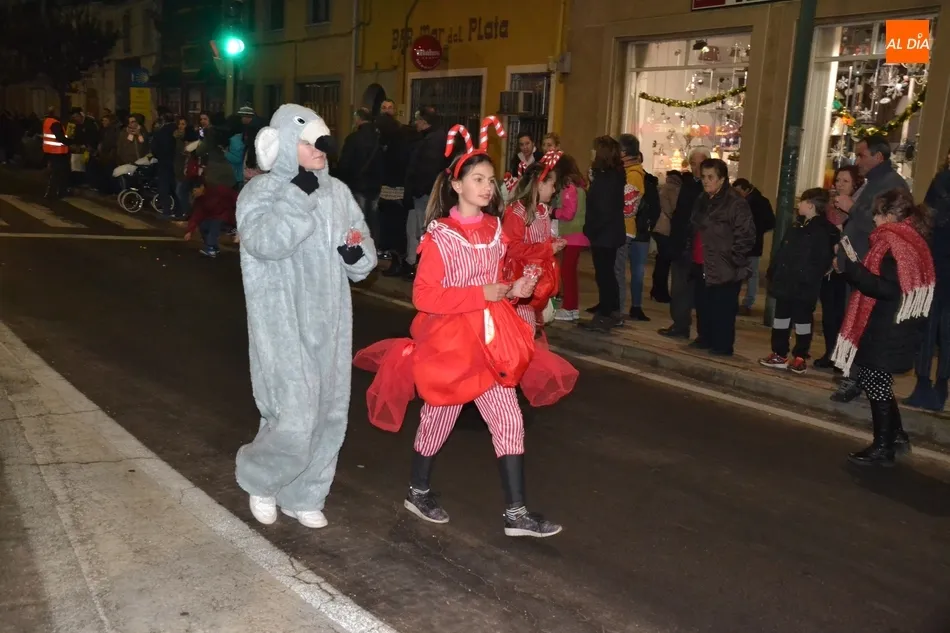 Como el año pasado, la Cabalgata fue abierta por un vehículo de los Bomberos Voluntarios. Tras el mismo, fue uno de la Guardia Civil, y a continuación, la Estrella de Navidad, un vehículo con Dora La Exploradora, una serie de duendes (la familia Cardona), Bobolino y Piruleta con un montón de amigos, otro vehículo con Pepa Pig, unos elefantes, un dragón chino, Bob Esponja y sus amigos, los Farinatos Roleros, Zipi y Zape, varios muñecos más, unos caramelos andantes, y la Estrella Mágica.
