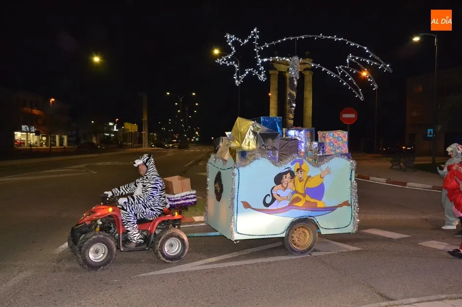 La primera de ellas fue la forma de llegar los Magos de Oriente hasta la nave del Paseo de Carmelitas (junto a la Escuela Infantil) donde los Amigos de la Ilusión han estado preparando las carrozas durante las últimas semanas. Tras regresar del centro histórico en una furgoneta, los Magos se subieron a una carreta para recorrer en ella el Paseo de Carmelitas (desde la zona de la fuente de San Cristóbal).