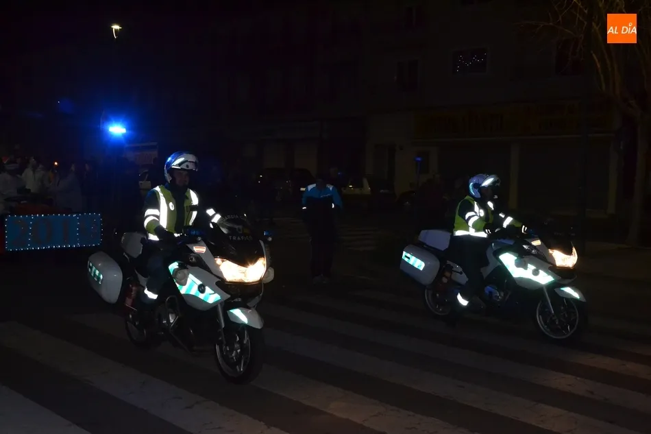 La Policía Local no participó de forma directa en la Cabalgata, pero varios de sus agentes se encargaron de regular el tráfico por las zonas por donde fue pasando: Avenida de Arcachon, calle García Lorca, rotonda de las Tres Columnas, Avenida de Salamanca, Avenida de España, calle San Fernando, Laguna, Avenida de Béjar, Glorieta del Árbol Gordo, Avenida de España, Avenida Yurramendi, Plazuela de San Salvador, Díez Taravilla y Colada.