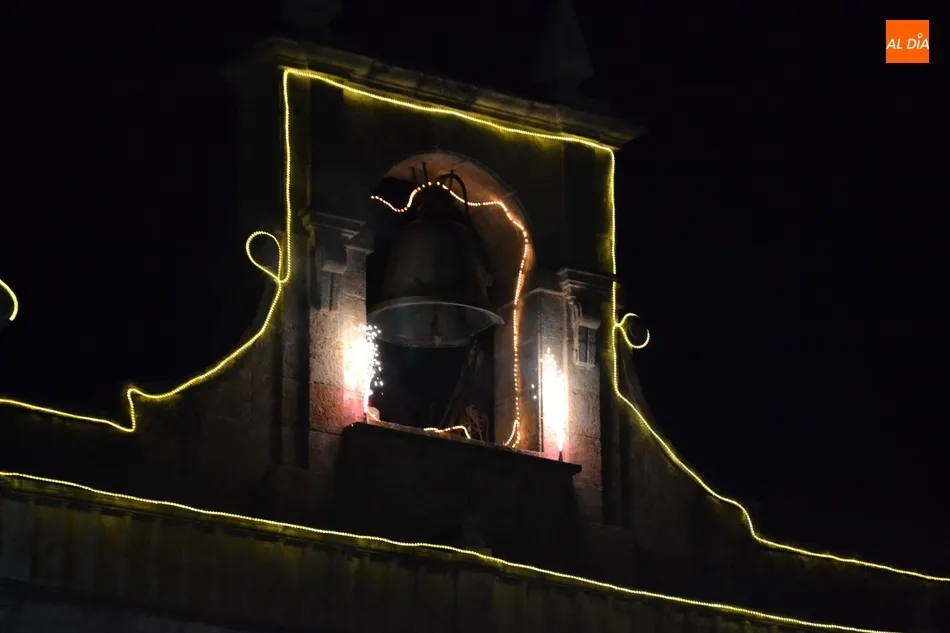 De forma novedosa, se lanzaron fuegos artificiales desde lo alto de la Casa Consistorial a su llegada a la Plaza Mayor