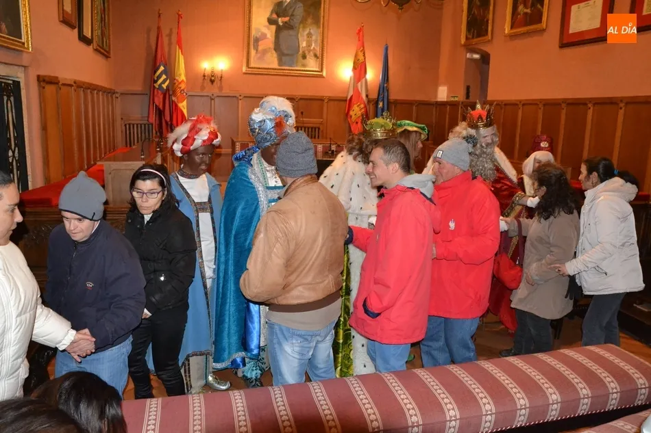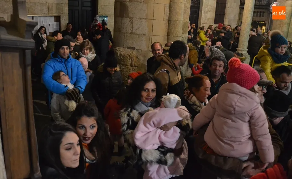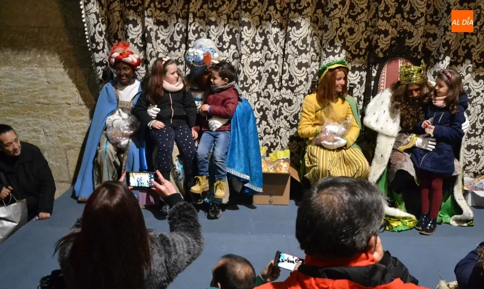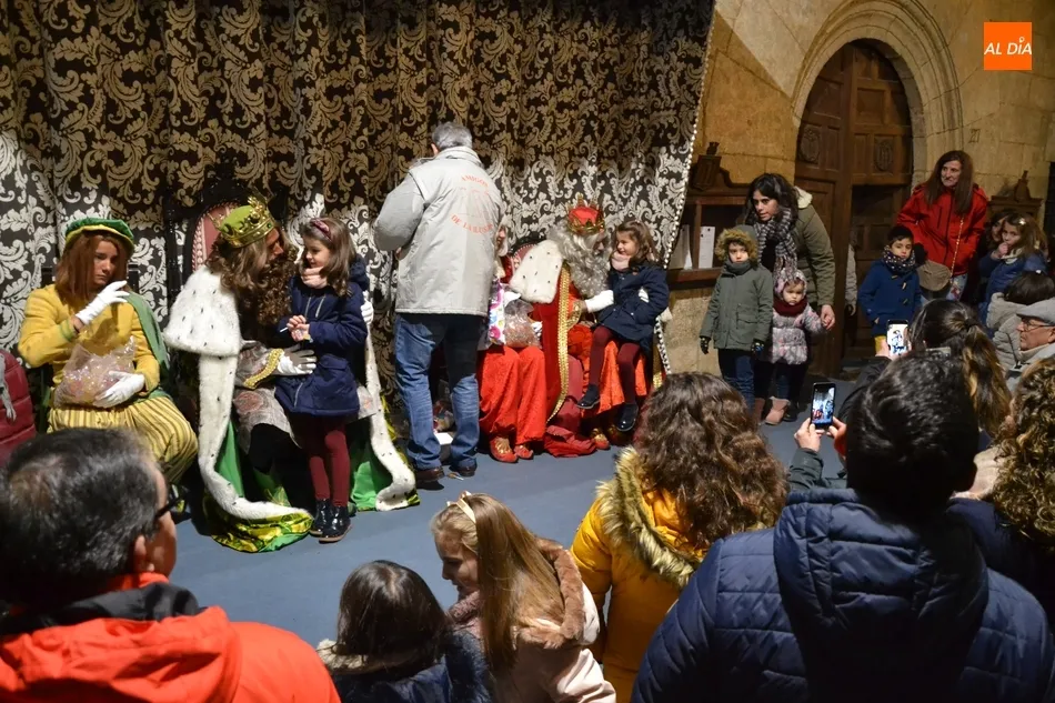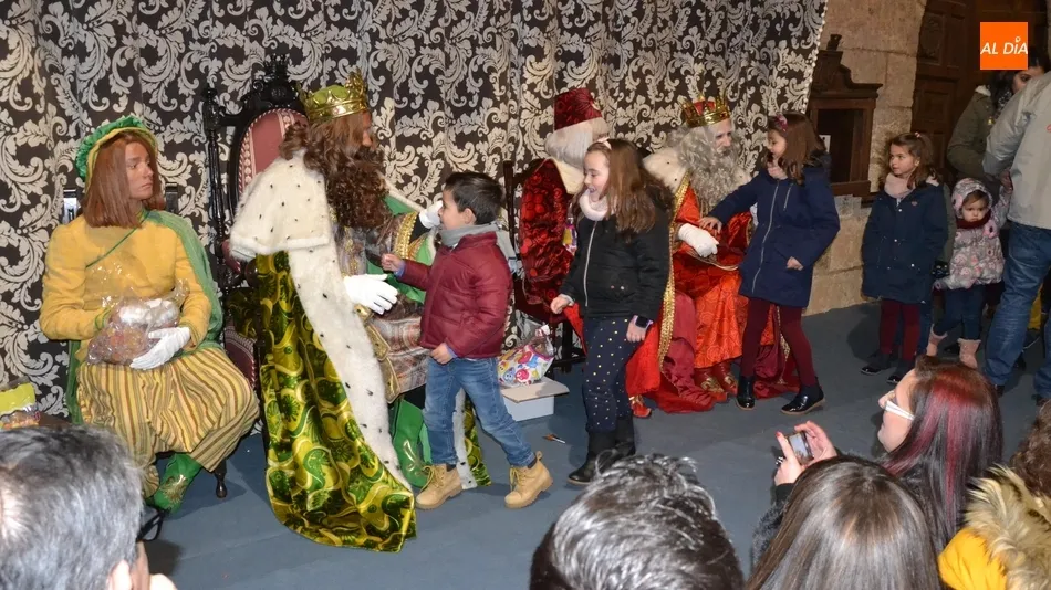 Finalizado este acto, los Magos y sus pajes bajaron a los soportales del edificio para recibir a todos los niños que les estaban esperando en una larga cola. Cuando se estaban sentando en sus tronos, Tato Galerías cerró la Cabalgata ?anunciando? lo próximo que hay en agenda en Ciudad Rodrigo: la Subida de San Sebastián en la mañana del lunes. De este modo, la Cabalgata se cerró con un ¡Viva San Sebastián!.