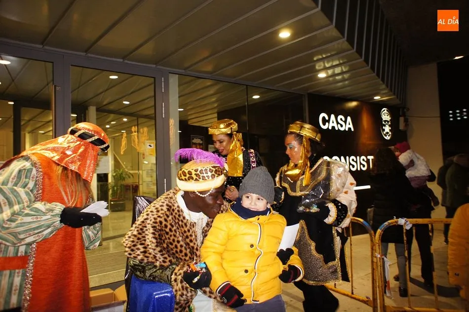 La primera parada de los Reyes Magos fue en la residencia de mayores de Guijuelo, visitando a los residentes y entregándoles un regalo en nombre del Ayuntamiento. El siguiente paso fue marchar hasta Cabezuela de Salvatierra, donde recibieron a los pequeños en la puerta de la iglesia. En Palacios de Salvatierra también fueron recibidos por los vecinos y los niños de la localidad, así como en Campillo de Salvatierra, donde el local municipal en la Plaza Mayor se llenó una vez más de cientos de personas, en especial los ilusionados niños.