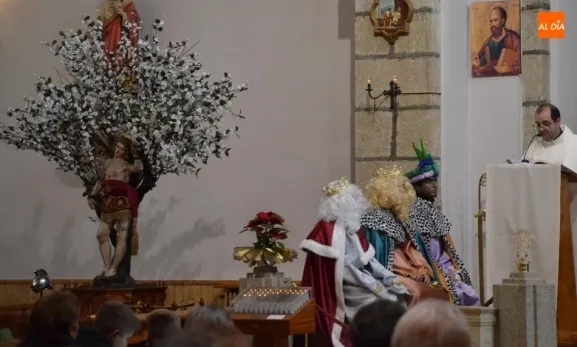 Este encadenamiento de celebraciones se ?escenificó? a la perfección en la mañana del domingo en la Iglesia de San Cristóbal: los Reyes Magos en primer plano participando en la eucaristía del Día de la Epifanía del Señor, y justo detrás suyo, ?esperando su turno?, la imagen del patrón de Miróbriga, ya preparada para la procesión de este lunes.