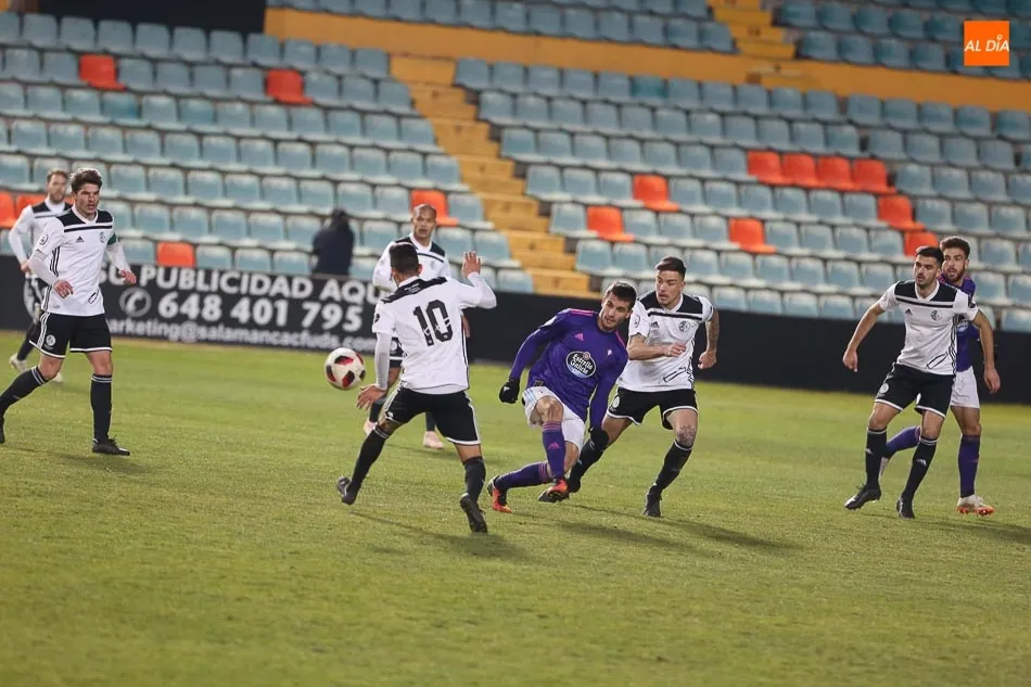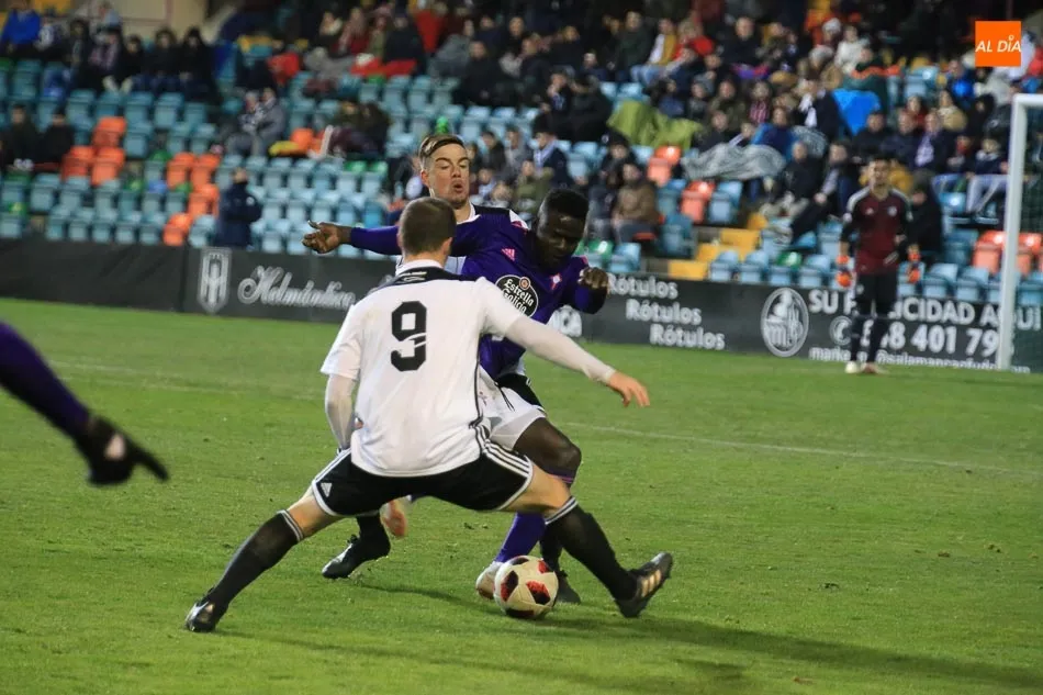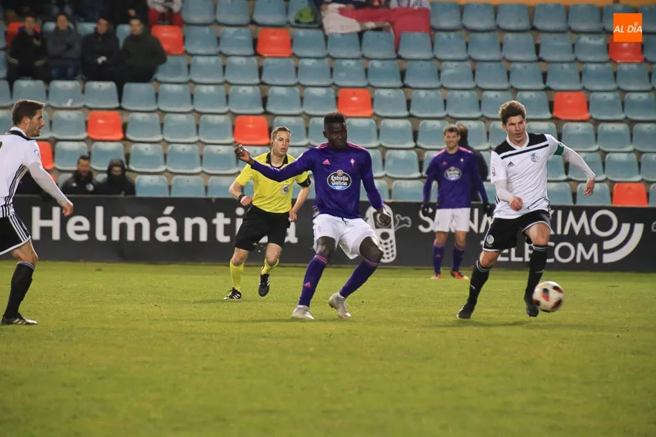 El primer duelo del año sobre el pasto del Helmántico arrancó en los instantes previos al encuentro con la sorpresiva alineación de Antonio Calderón al salir ante el filial del Celta de Vigo con un sistema inédito hasta la fecha: 5-2-3 con Calero y Víctor Mena como carrileros y Tyson, Ricardo Carvalho y Toño Vázquez como centrales, mientras que Antonio Amaro y Carlos Indiano formaron pareja en doble pivote. Hasta ahí, todo normal, pero lo extraño llegó al ver una delantera compuesta por Sergio Molina, Manu Molina y José García.