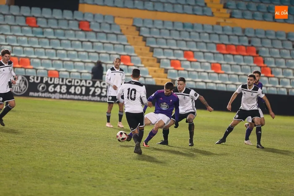 Tras la reanudación, el Celta de Vigo ?B? intentó estirar líneas, pero no fue capaz de generar ocasiones serio peligro sobre la portería charra y sólo tuvo opciones de hacer daño a su rival tras la justa expulsión de Ricardo Carvalho, que se perderá el partido frente al Fuenlabrada, al frenar con un agarrón del cuello a Ibán en el 68?, lo que propició el debut de Javi Carpio con el Salamanca UDS. Con uno menos, el cuadro vigués quiso probar fortuna, pero Pablo González, que entró en la segunda parte, firmó la tercera obra de arte del choque en el 83? y Sergio Bermejo maquilló el resultado en el 89? con el 3-1.