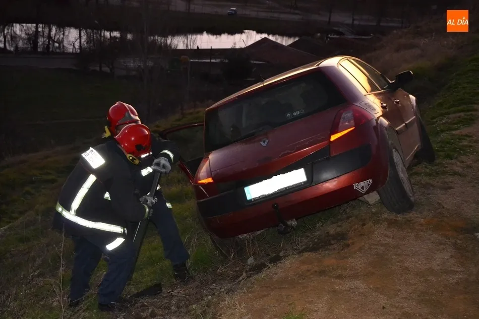 Según explican personas que acudieron al lugar nada más producirse el suceso, el hombre resultó herido, pero no por el incidente en sí, sino al caerse cuando procedió a salir del vehículo. Este conductor fue evacuado por un vehículo sanitario que se desplazó hasta el lugar. Asimismo, también se movilizaron la patrulla de servicio de la Policía Local y hasta tres dotaciones de los Bomberos, con el objetivo de intentar sacar el vehículo de la Bajada, algo nada sencillo.