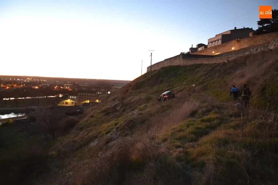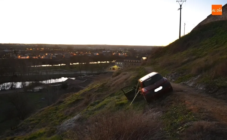 Un conductor se salvó por los pelos en la tarde del miércoles de lo que habría sido seguramente un gravísimo accidente tras meterse por error con su vehículo por la Bajada de San Pelayo, uno de los estrechos caminos de tierra que permiten llegar andando hasta la zona del río en Ciudad Rodrigo (concretamente, este camino arranca junto a la calle Camilo José Cela y enlaza con la Cuesta de las Emes).