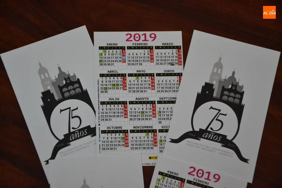 El Ayuntamiento de Ciudad Rodrigo tiene disponibles tanto en la Oficina de Turismo como en la Conserjería de la Casa Consistorial unos calendarios de bolsillo dedicados al 75º Aniversario de la Declaración de Ciudad Rodrigo como Conjunto Histórico-Artístico, que han visto la luz gracias al programa mixto de formación y empleo ?75 Aniversario?