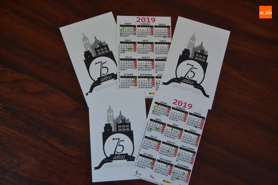Como se puede ver en las imágenes, esos calendarios tienen en su anverso el logotipo creado por José Luis María Hernández ?Chele? para promocionar la conmemoración, recogiendo el Parador, la Casa Consistorial, la Iglesia de Cerralbo y la Torre de las Campanas de la Catedral, justo por encima de la leyenda ?75 años?.