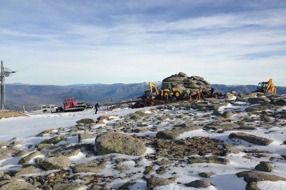 A la mañana siguiente, el sábado 21 de diciembre, Javier Maíllo, responsable de la base de la estación de esquí, coordinó con los servicios municipales el transporte hasta la estación de ambas subestructuras, más los acopios necesarios de grava, cemento y anticongelante proporcionados por Almacenes Revilla en Béjar. Ese mismo sábado el personal de la estación consiguió subir hasta la cumbre, en el cazo de las palas retroexcavadoras, el grupo electrógeno, la hormigonera, agua en bidones, arena, grava y cemento, en cantidad suficiente para ir preparando la cimentación de los anclajes de la estación tensora en su nueva ubicación. También se subió la subestructura trasera, y el lunes 24 por la mañana, día de Nochebuena, se subió más material y la subestructura delantera.