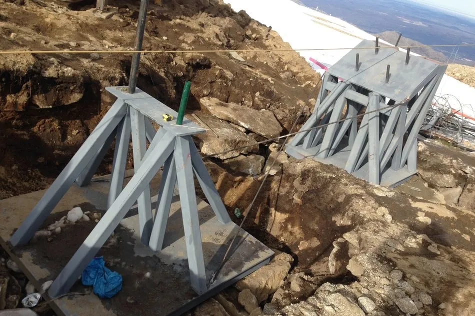 El segundo problema era ejecutar los anclajes en nuevas cimentaciones construidas en un entorno muy difícil y con un tiempo atmosférico impredecible, teniendo en cuenta, además, la imposibilidad de acceder al lugar con medios de construcción habituales.