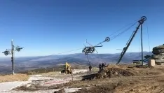 A continuación el responsable de montaña de la estación, Javier Conesa, y su equipo, comenzaron a rematar la durísima tarea de poner a punto todas las regulaciones de las numerosas poleas, tensores, vientos y demás ajustes que requiere el telearrastre, que ha variado su longitud y precisa de un tense nuevo. Son las operaciones que se hicieron antes del inicio de temporada y que hay que repetir.