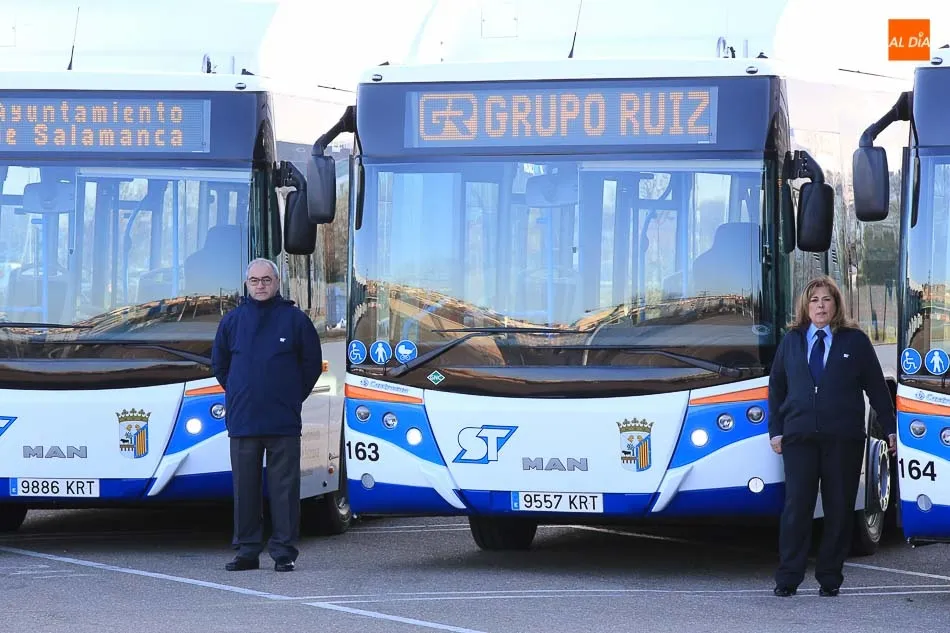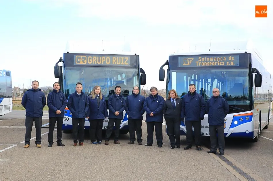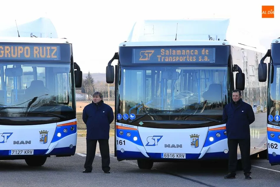 Salamanca ha incorporado a su flota de autobuses urbanos 12 nuevos vehículos ?para seguir mejorando y modernizando el transporte público?, manifestó el alcalde de la ciudad, Carlos García Carbayo, acompañado del presidente del Grupo Ruiz, Gregorio Ruiz y del director general, Alberto Egido, durante la presentación en el aparcamiento de La Aldehuela.