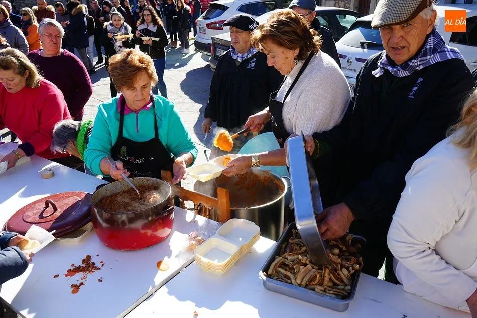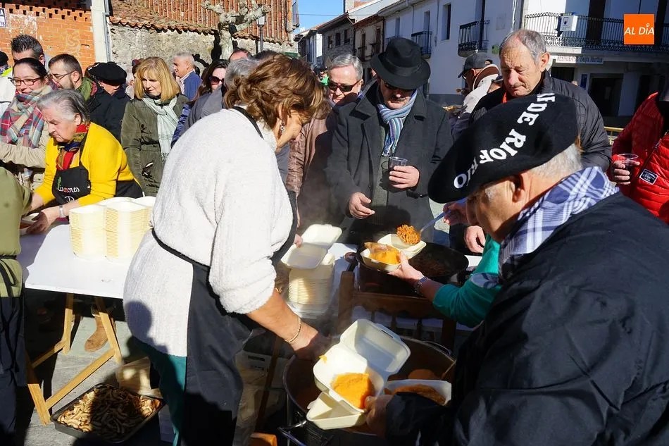 Desde las diez de la mañana, momento en que comenzaron las actividades, hasta las dos de la tarde, el público fue aumentando, entre el que no faltó el alcalde Ignacio Polo, hasta llegar a cerca de 500 personas en el momento del reparto de la comida. El menú, elaborado por los voluntarios de la asociación de mayores, contó con patatas meneás, torreznos y chicha, regado con vino de la tierra.
