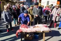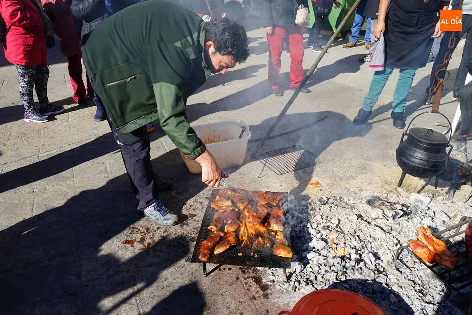 La Plaza Mayor ha sido el escenario donde Ayuntamiento y la Asociación de Mayores han ofrecido una edición más de la cita gastronómica en la que se contó también con el personaje del pregonero, quien animó el proceso de despiece del cerdo con una explicación paso a paso del sangrado, chamuscado y despiece del animal. El cual llegó a la plaza ya sacrificado, tal y como indica la legislación vigente.
