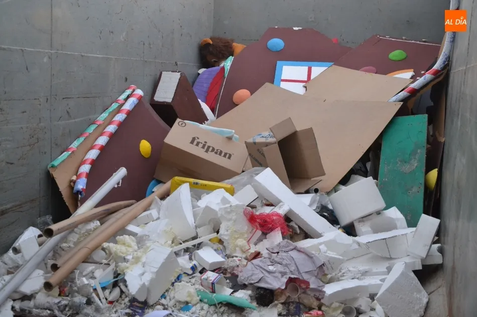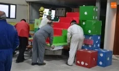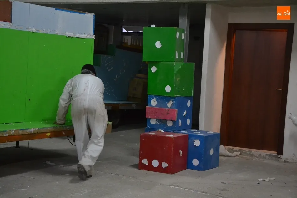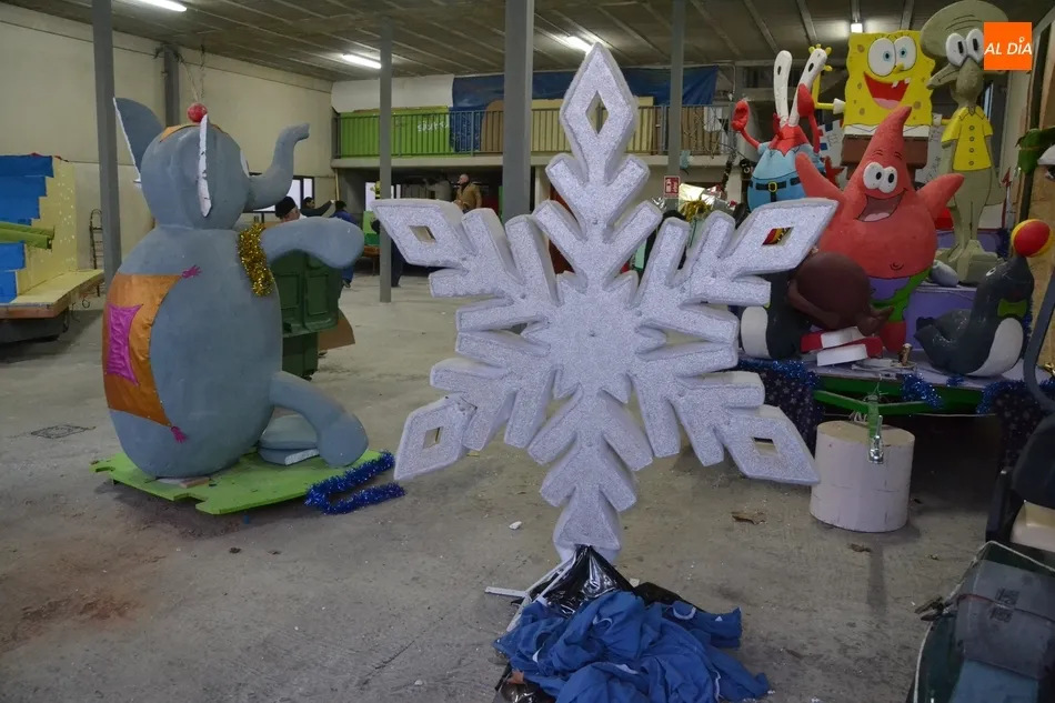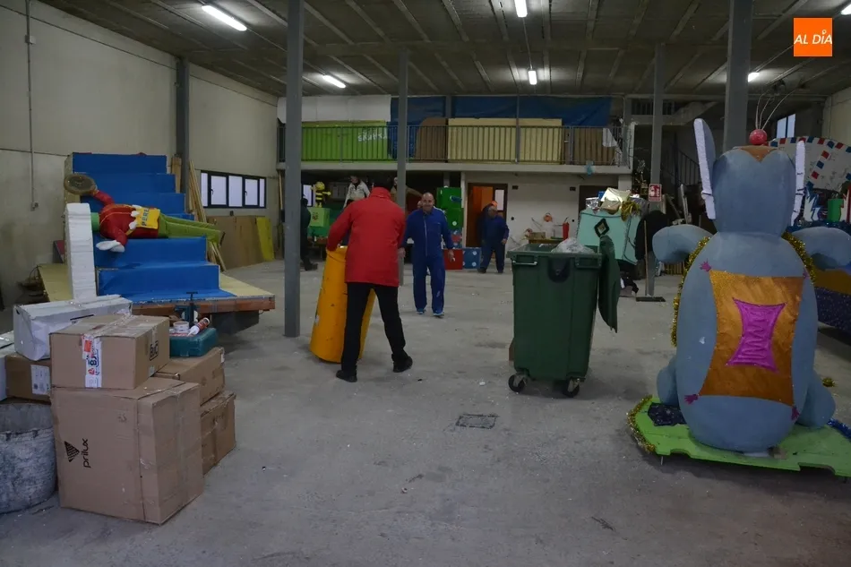 Una vez retirados todos los elementos (algunos de los cuales se guardarán, mientras que otros han sido tirados a la basura por cuestiones de espacio), fue el momento de ?aparcar? las estructuras de las carrozas dentro de la misma nave donde fueron construidas, la situada junto a la Escuela Infantil. Allí permanecerán (aparcadas en un lateral) durante todo el año hasta que el próximo mes de diciembre vuelvan a ocupar toda la nave.